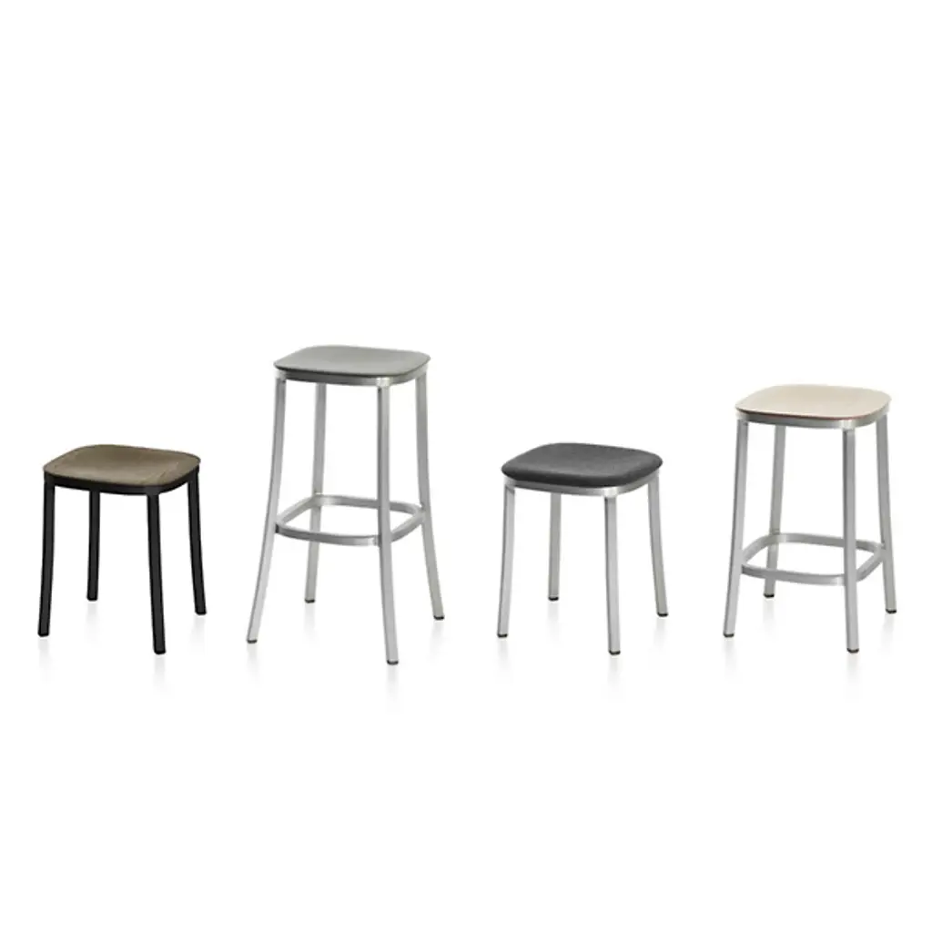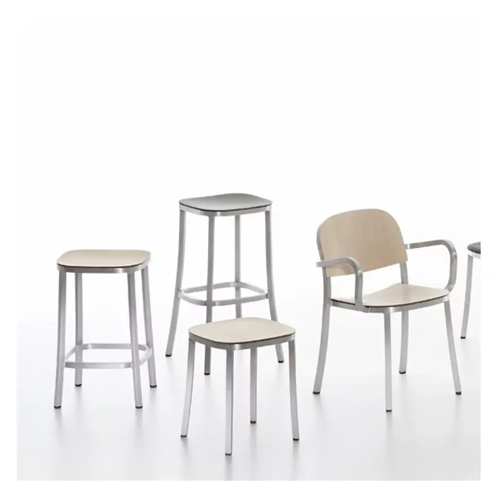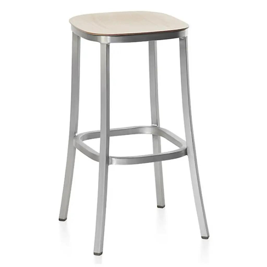 Consider the timeless simplicity and sustainability of the 1 Inch Barstool, Wood Seat when furnishing a contemporary home. The frame is handcrafted of recycled aluminum to make the piece strong and lightweight. To create a custom design that complements décor, the seat is available in an array of finishes. Perfect for kitchen islands, breakfast nooks or bars, this stool has a footrest for added comfort when you're having a quick bite or beverage.