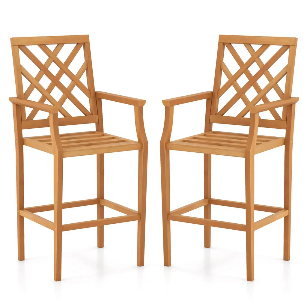 Our wooden bar stool is the perfect addition to any outdoor space! Delicately made of natural teak wood, the bar chair shows perfect performance in lasting durability and great weight capacity. Moreover, the natural wood finish not only adds a stylish look but also perfect for year-round use. The sitting comfort matters a lot, and that's why it adopts ideal height, inclined backrest and armrests. In addition, a conveniently placed footrest provides added support and stability, ensuring a comfortable seating experience. Designed to blend seamlessly with any outdoor setting, this counter-height chair offers a comfortable retreat in your backyard, garden, balcony, or poolside. Features:Specification