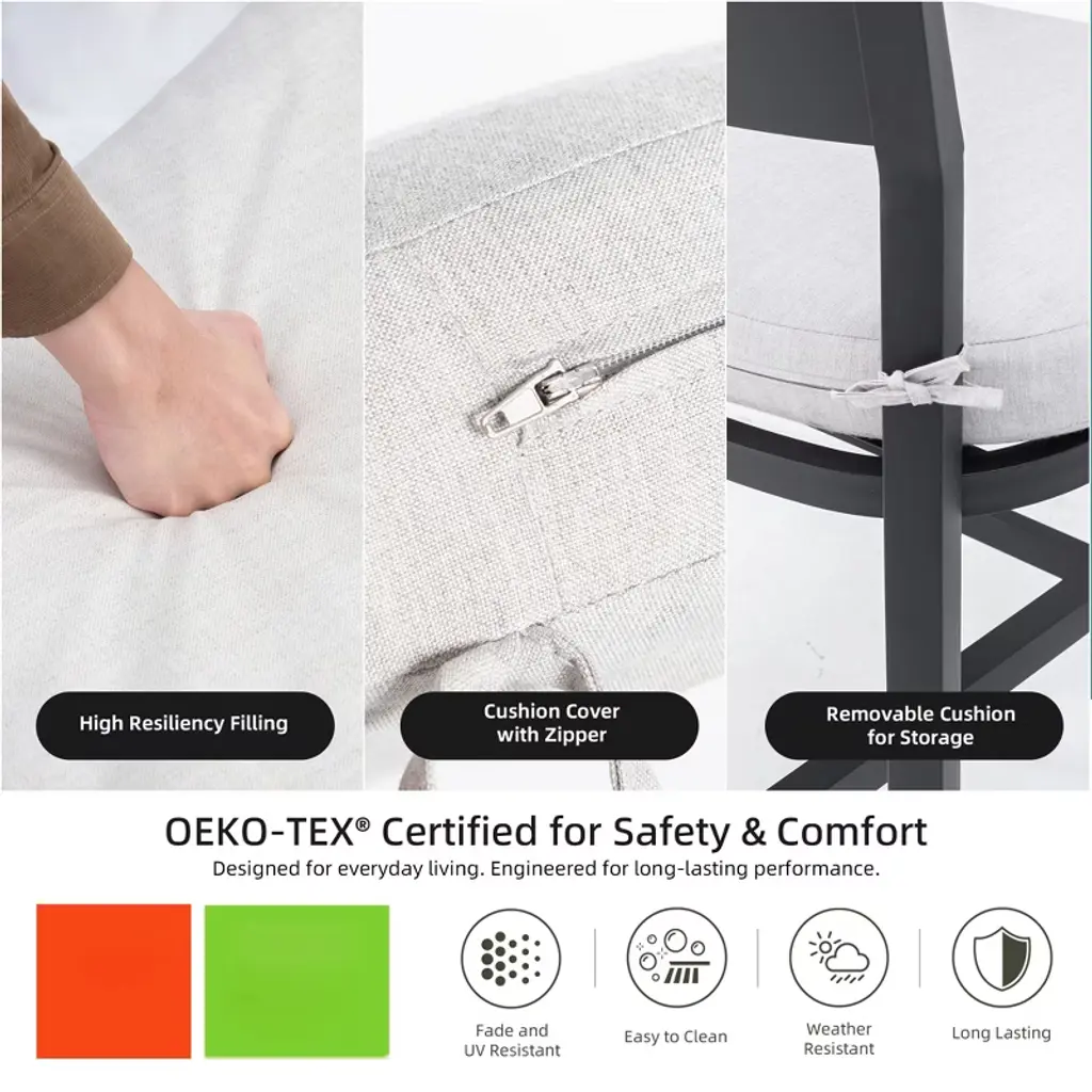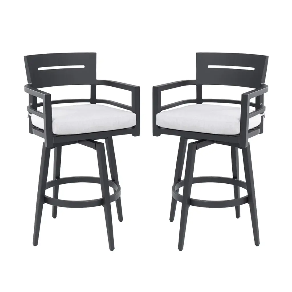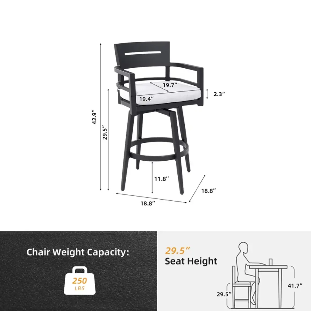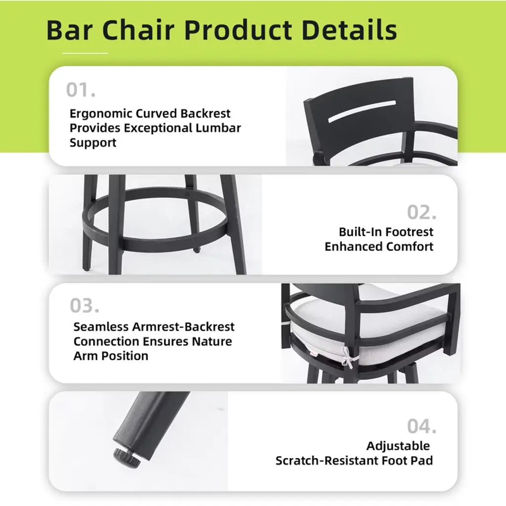 2 Piece Outdoor Swivel Bar Chairs, Aluminum Counter Height Bar Stools, Armrest Patio Bar Chair For Kitchen Garden Pool Backyard, 250 Lbs Max Load