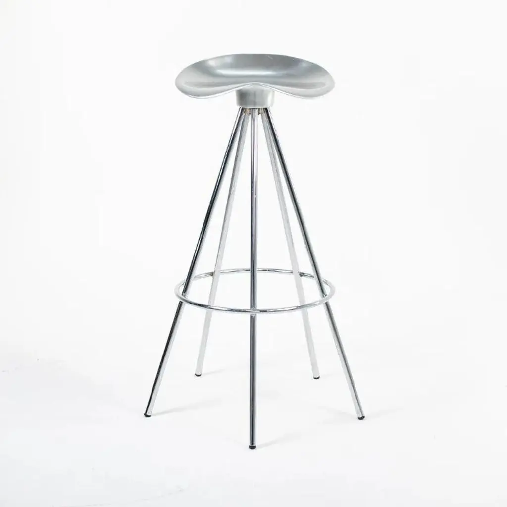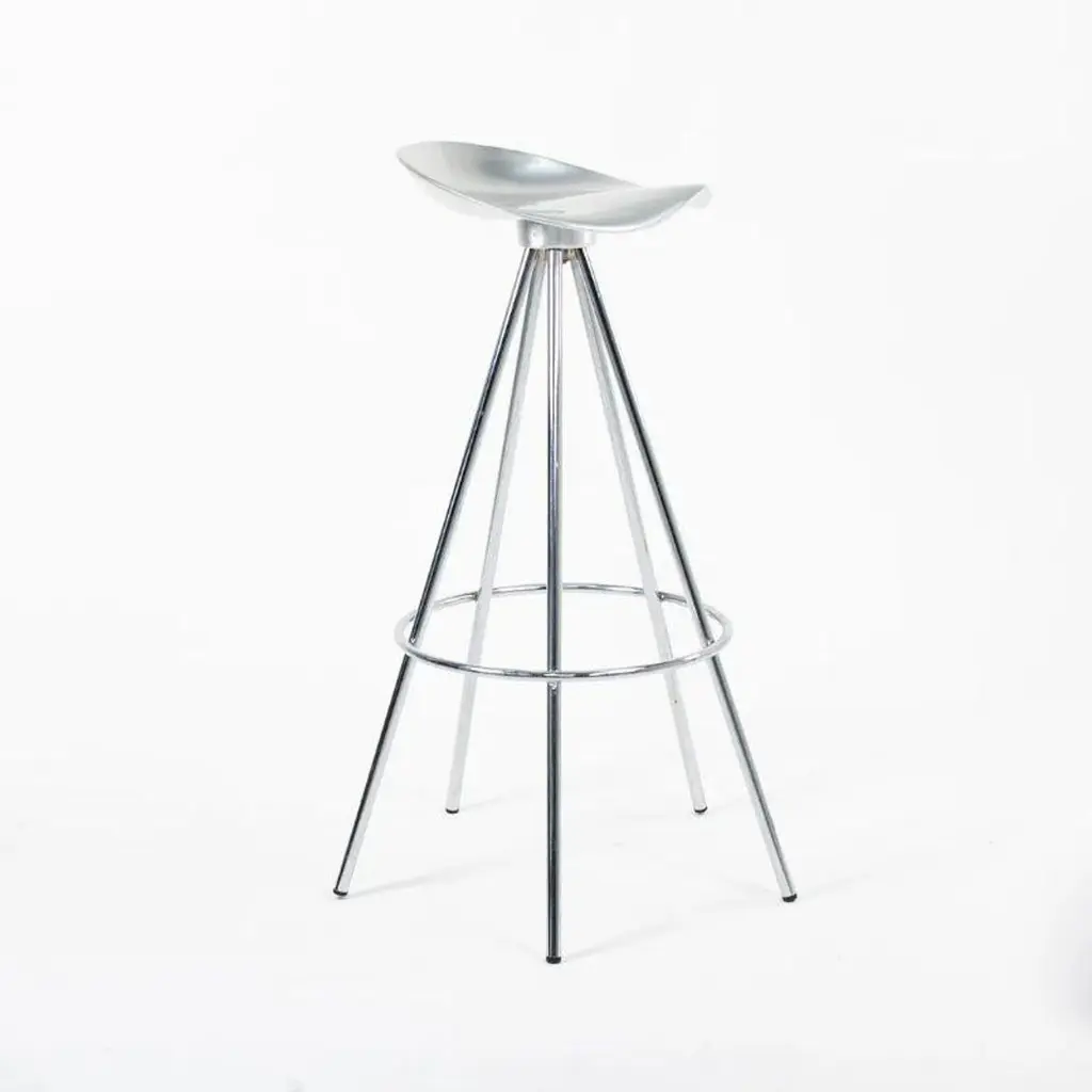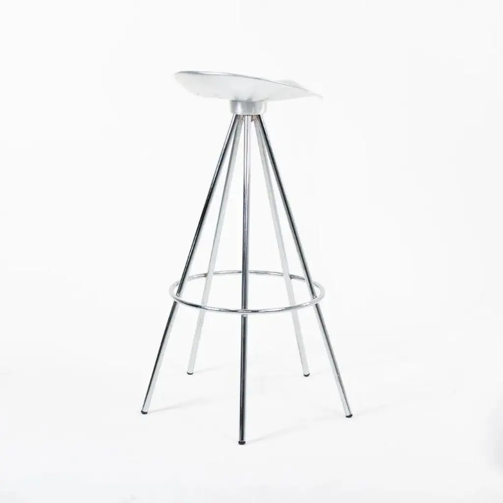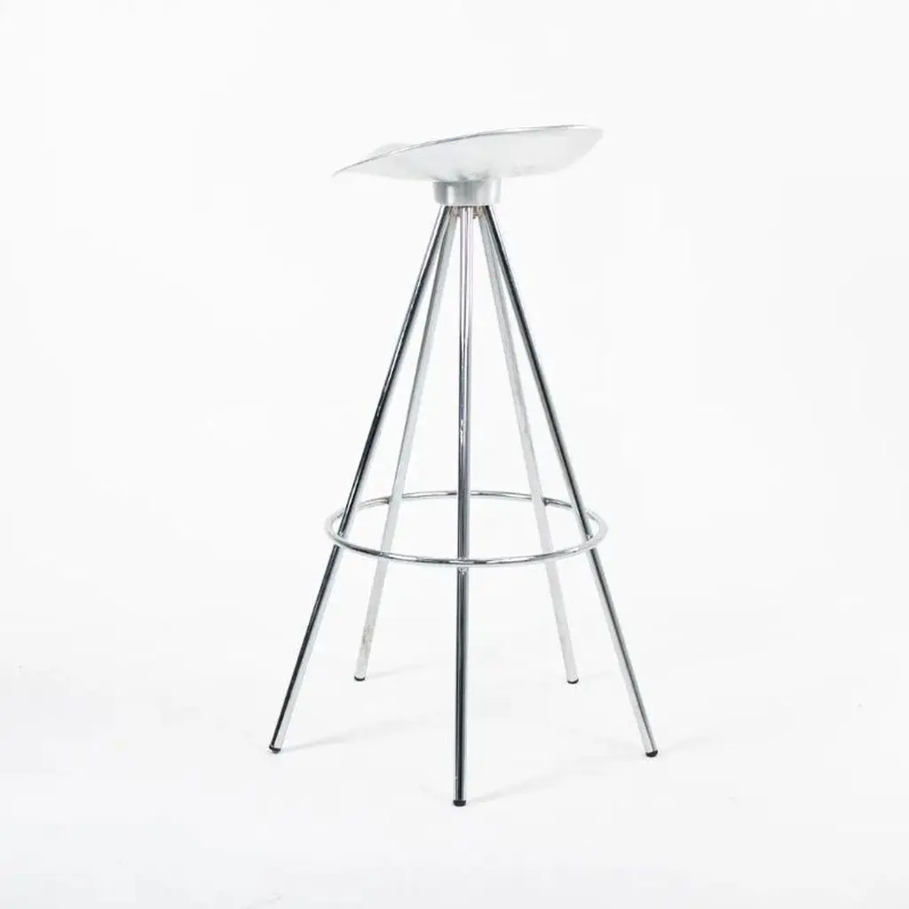 This is a single (multiple stools are available, priced individually) Jamaica bar stool, originally designed by Pepe Cortes for AMAT-3 in 1993. These stools are a later Knoll & AMAT-3 production from the 2000s. For context, Knoll was the US distributor or seller for AMAT-3 designs. The design incorporates a polished cast-aluminum seat, and has chromed steel legs. The Jamaica design is an important piece in the history of Spanish Design. The seat is sculpted in an ergonomic form that offers more comfort than one would think. While these appear quite modern upon first glance, this design plays well in various design schemes. The design has been on the market for over 25 years and has become a modern classic.The listed price includes one stool. Eight are available. Each stool measures 31.89 inches in height, 14 inches in width, and 13.25 in depth. The seat height is 30.32 inches. The stools are in excellent used condition with minor wear consistent with age. These are not the lower counter stools.