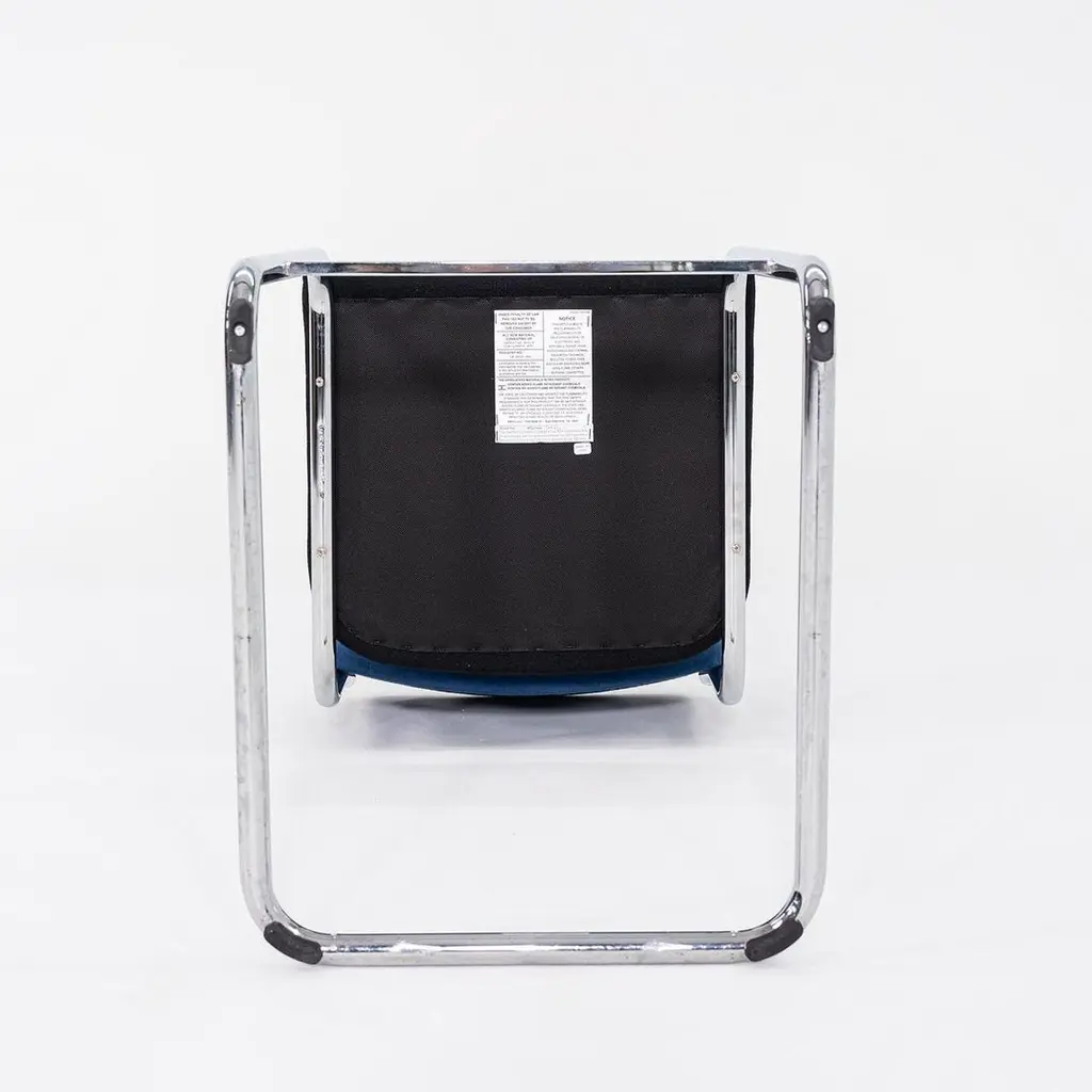 These are Cesca Bar Stools, originally designed by Marcel Breuer in 1928. These particular examples were produced by Knoll in 2019. The stools are comprised of a tubular steel frame with a seat and back upholstered in fabric. The listed price includes on stool and there are six available to purchase. Each stool measures 21.6 inches deep, 18.125 inches wide, and 42 inches high with a seat height of 29 inches. These pieces show minor wear from previous use but overall are in very good to excellent condition. Please see photos.