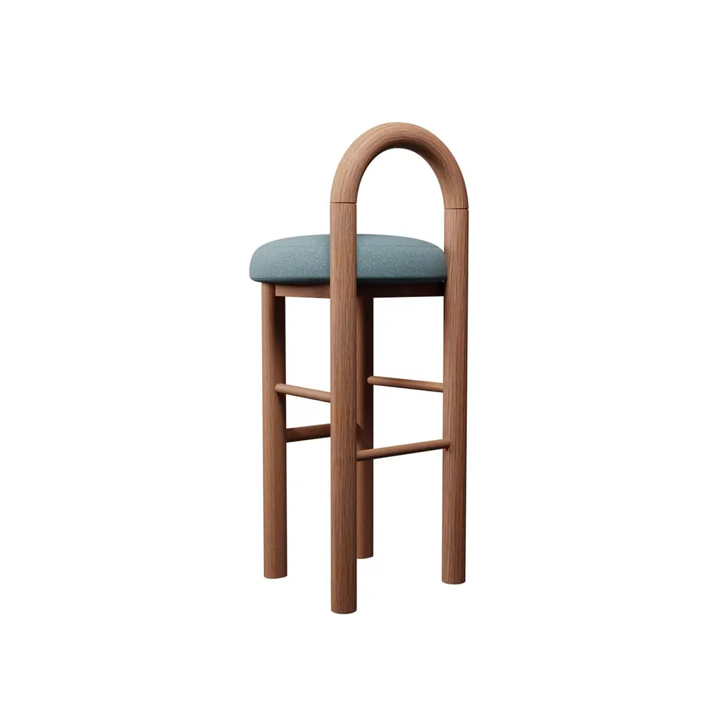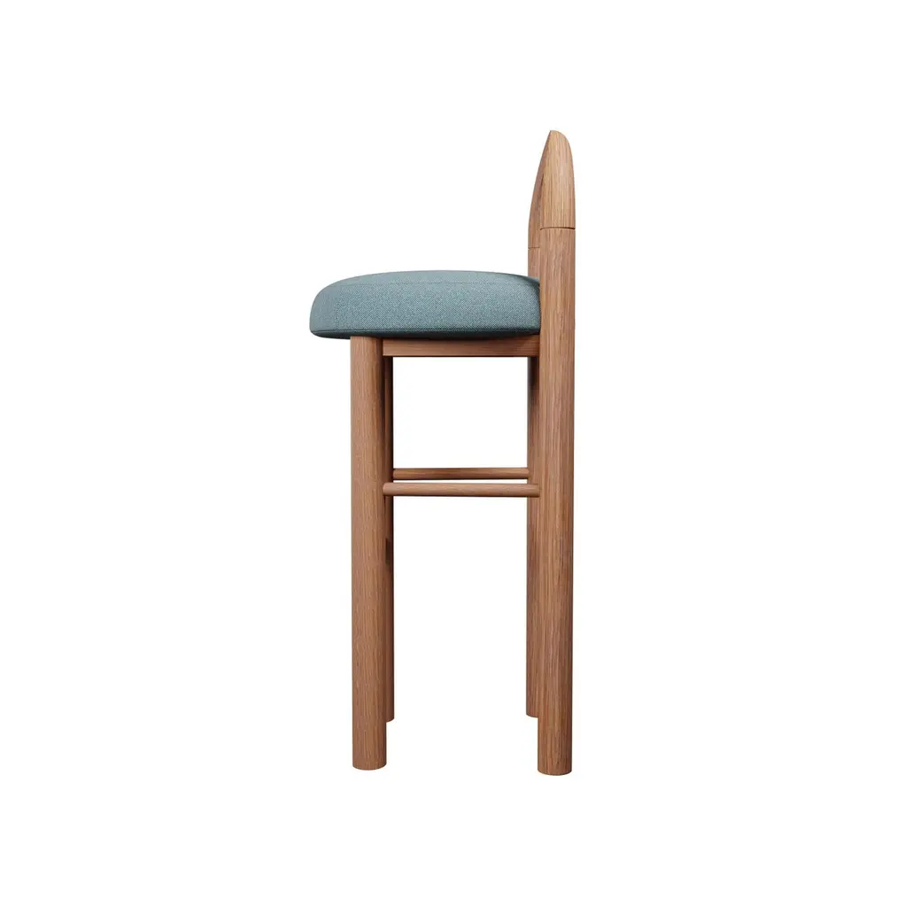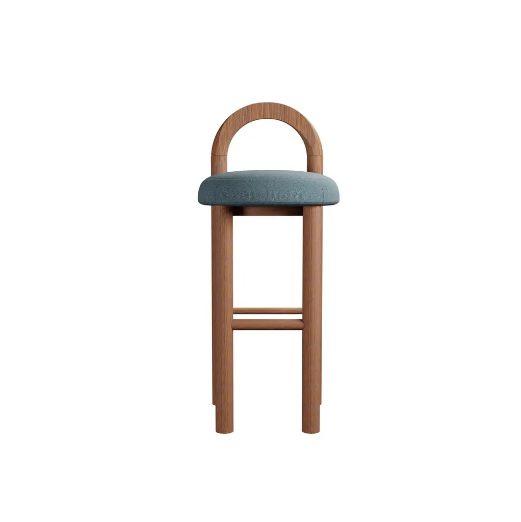 21th Century Moss Bar Stool U In Blue Plain Weave Fabric Handcrafted By Murmurio