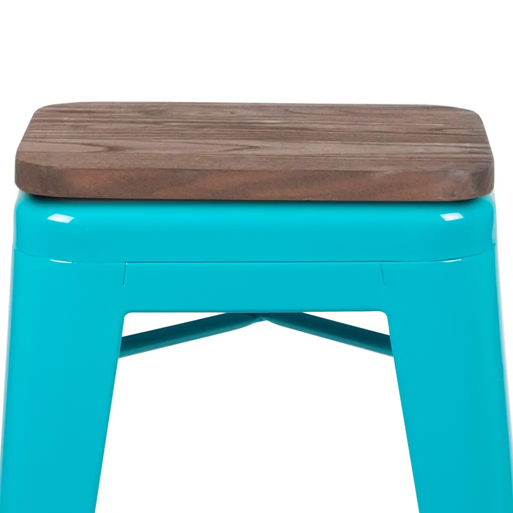 Add exciting furniture to your kitchen and dining room with these colorful metal bar stools. The industrial style stool conforms in modern and traditional spaces. Lower support braces doubles as a footrest, and floor glides protect your floor by sliding smoothly when you need to move the stool. Outfit your eatery with these beautiful stools. The classic metal stool with wood seat looks extraordinary when matched with metal or rustic dining tables. The bistro stools offer a chic option in contrast to conventional wood seating and are built for indoor use. The space-saving stool with tapered frame stacks up to 10 high for storage. Plastic bumper guards protect the frame finish while the stools are stacked. Purchase this pack of 4 counter-height stools for your kitchen island for an immaculate look when pushed under the overhang.