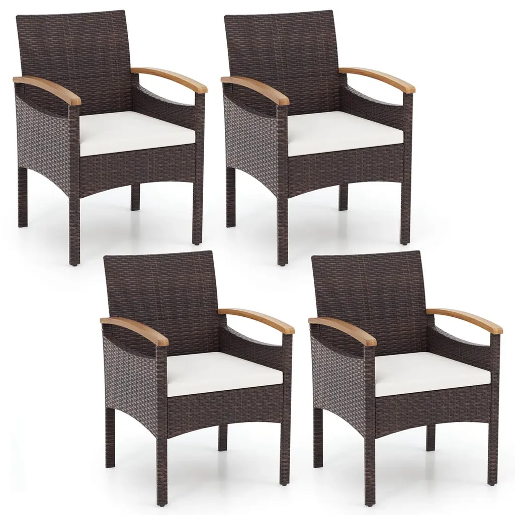 2/4pcs Patio Pe Wicker Bar Chairs Height Barstools With Wood Armrests - 2 Pcs