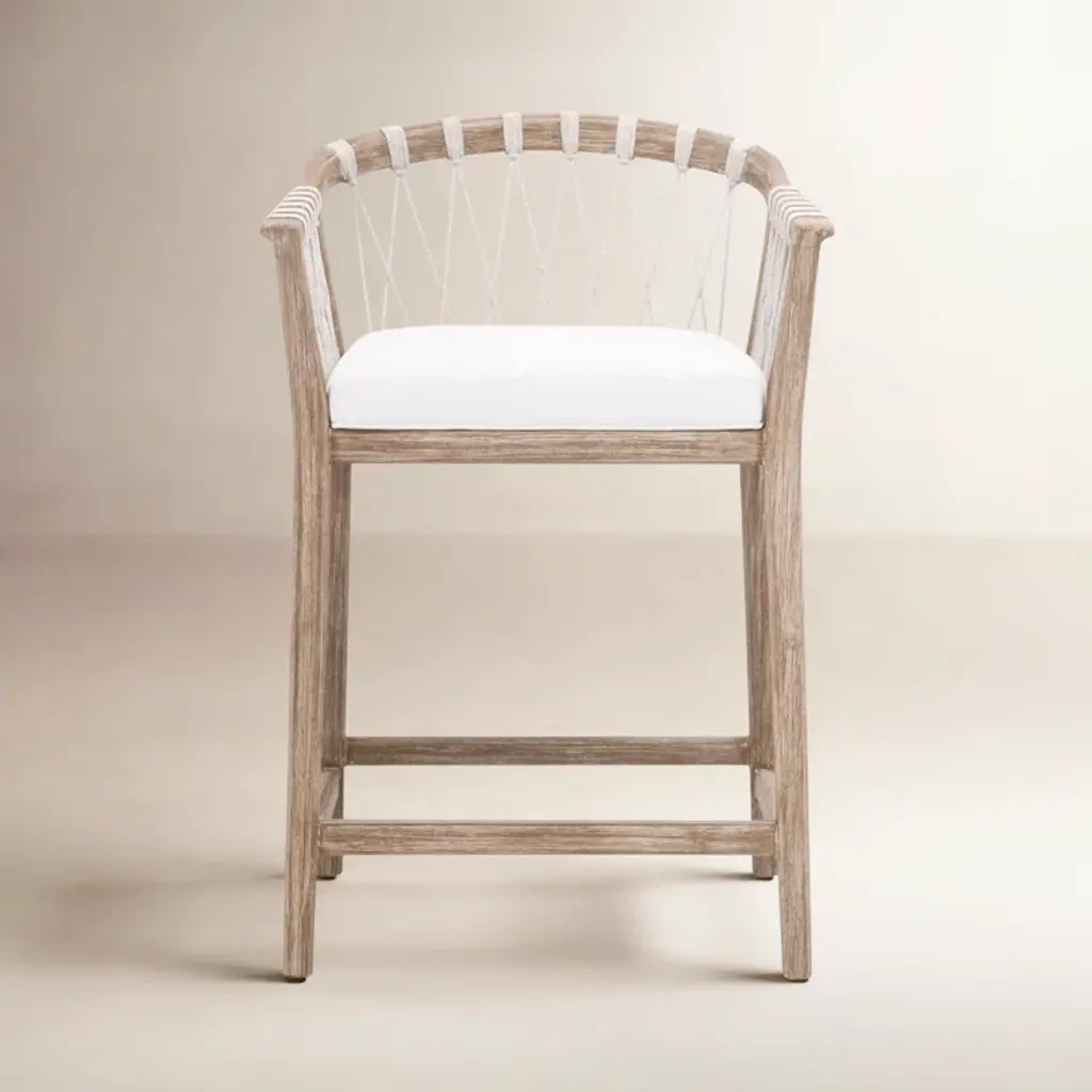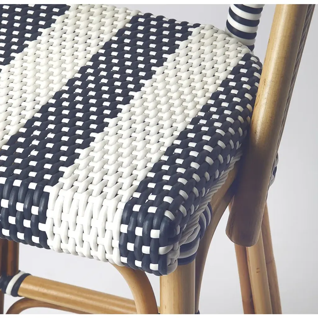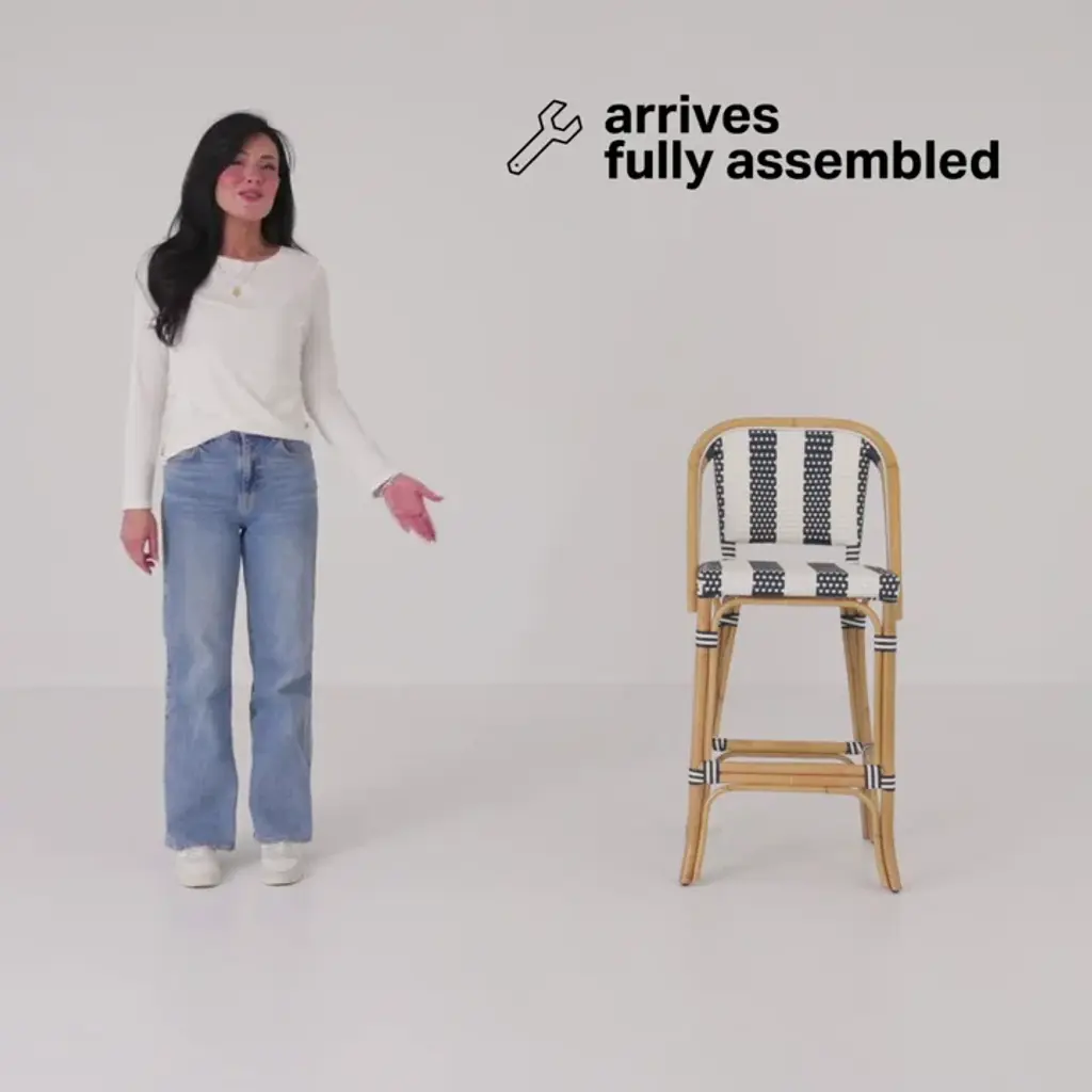 Evoking images of sidewalk tables in the Cote d'Azur, the 28" Bar Stool will give your kitchen or patio the casual sophistication of a Mediterranean coastal bistro. Skillfully crafted from thick bent rattan for superb durability, it features weather-resistant woven plastic in an inviting brown and white carrier pattern. This barstool is lightweight for easy mobility with comfort to make the space it's in a frequent gathering place.