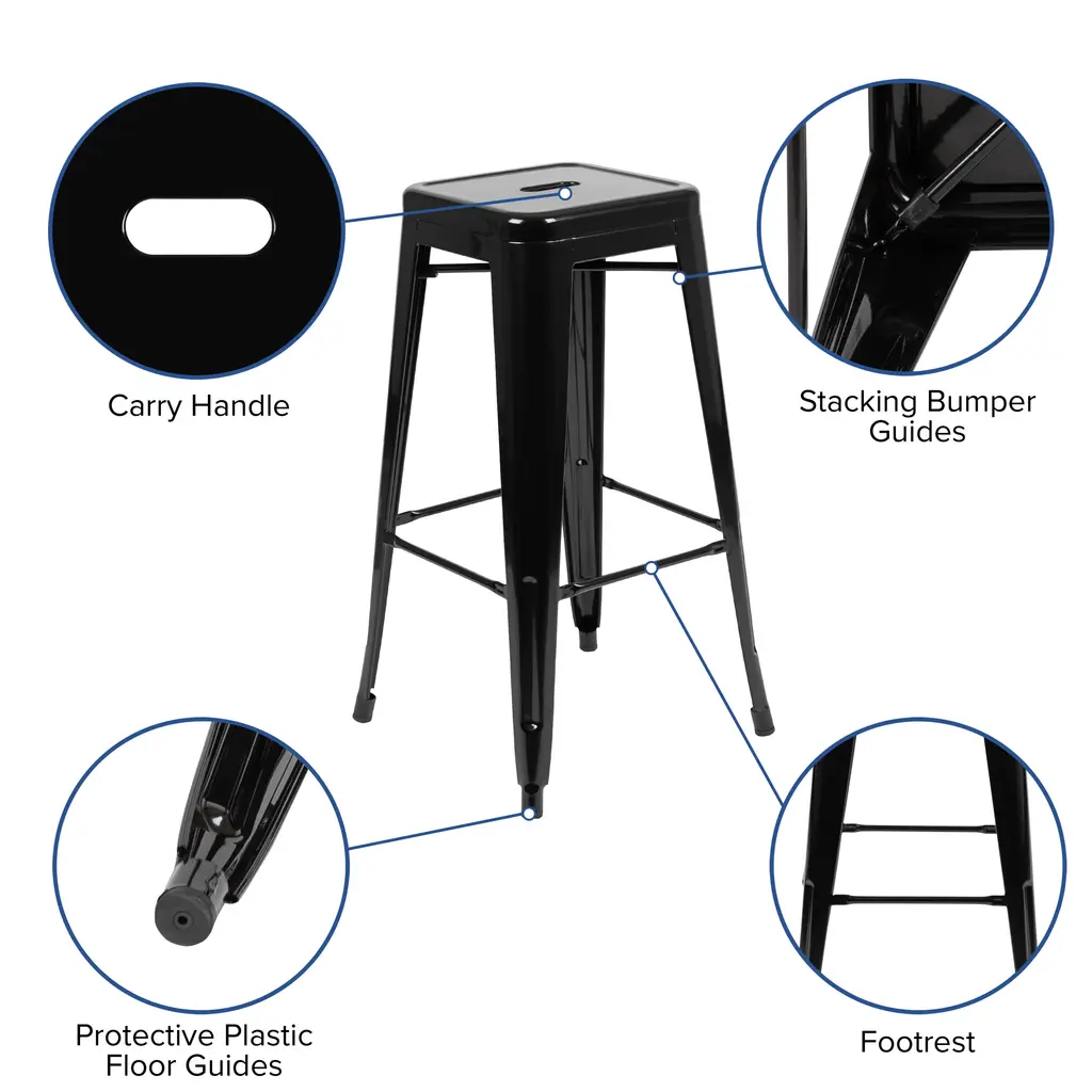 30" High Metal Indoor Bar Stool - Stackable Set Of 4