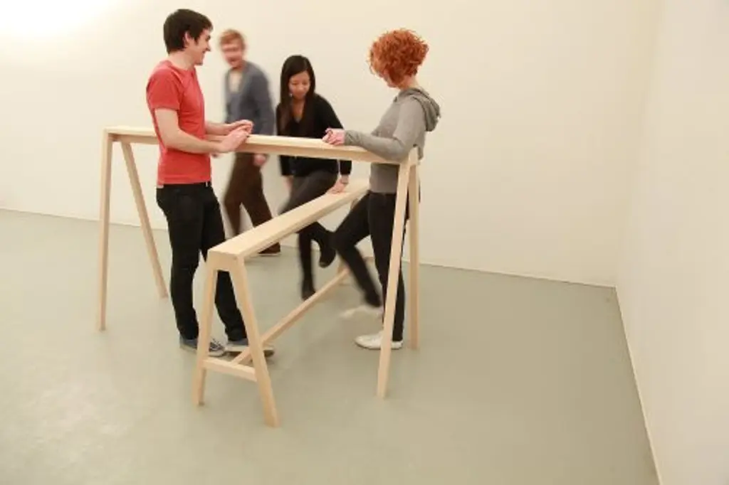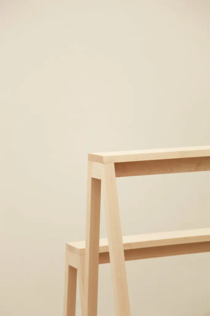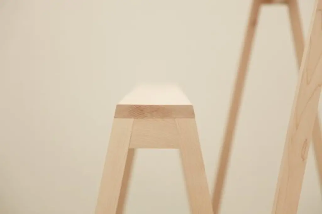The AA Furniture set aims to create a hub of social activity in any space through a functional and simple design that encourages interaction and communication. The set is made of two pieces which can be used on their own or together as part of a complete table and seating solution. Narrow and elegant, the A-table is deigned to reach a bar height and can be used from either side. The A-bench has a bar stool height, ensuring that those sat on the bench will be at the same eye level with people standing on the other side of the table. Both pieces are made from light maple wood and can be assembled quickly. An ideal choice to bring people together, the AA Furniture set will complement any décor with its simple and modern aesthetic.