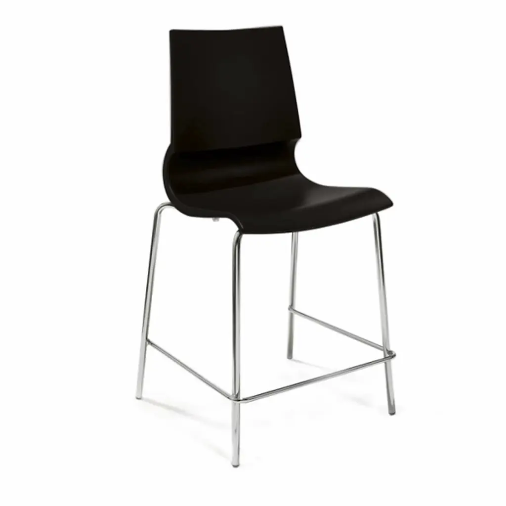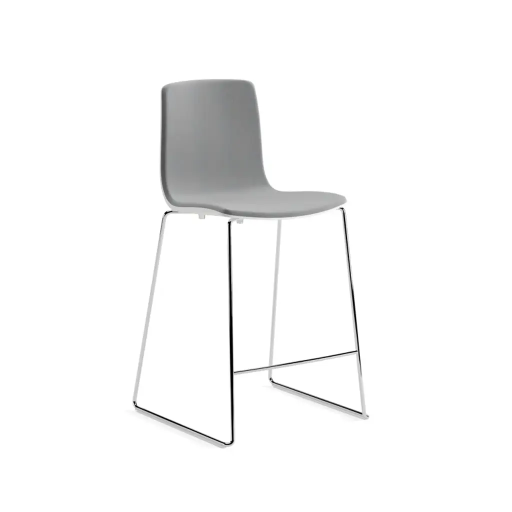 From the original wooden collection, the Aava stool line has expanded to include a new plastic shell in a soft, elegant range of colors lending quiet sophistication to Aava’s fluid lines. The stool with sled base in chromed steel and polypropylene shell in white or black. Polycarbonate glides with a felt insert for wood floors.