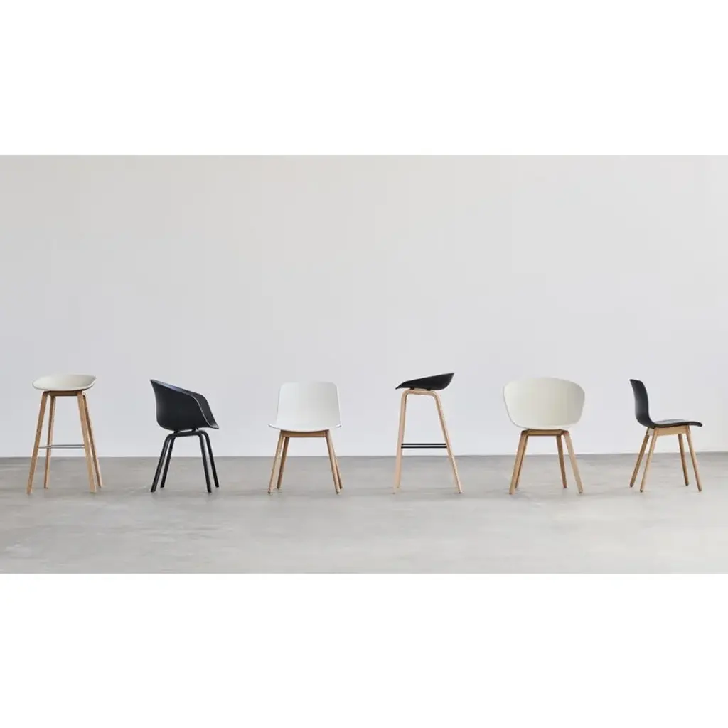 The About A Stool AAS32 barstool is part of HAY’s About A collection, created in close collaboration with designer Hee Welling, featuring chairs with outstanding simplicity and combinability. The bar stool’s streamlined seat is crafted from recycled polypropylene, and its wooden frame is made from oak and finished with an eco-friendly water-based lacquer. In 2023, HAY updated the entire About A Collection with shells made from 100 % post-consumer plastic. With the About A collection, Hee Welling wanted to reach a new level in the combination of shape, function, comfort, detail, and esthetics. The idea was to develop a chair that would work equally well around a dining table and a conference table, as well as in a restaurant, café or office. Due to their simple and straightforward design, the chairs can be combined with many types of furniture and interiors.