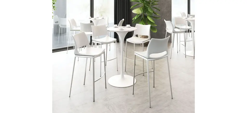 The Ace bar stool provides a brushed stainless steel frame plays a supporting role while the built-in curved footrest keeps you firmly planted.