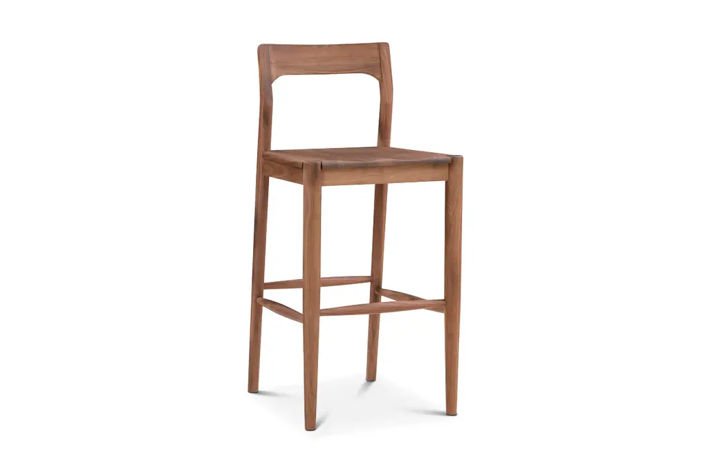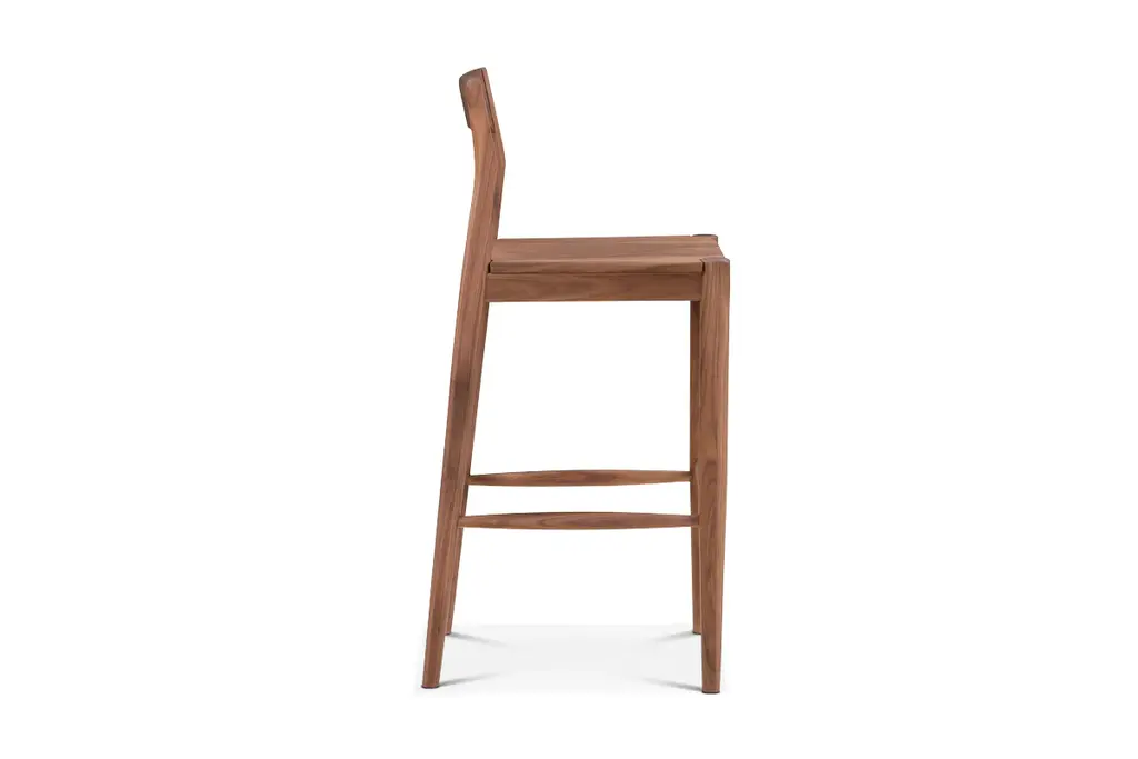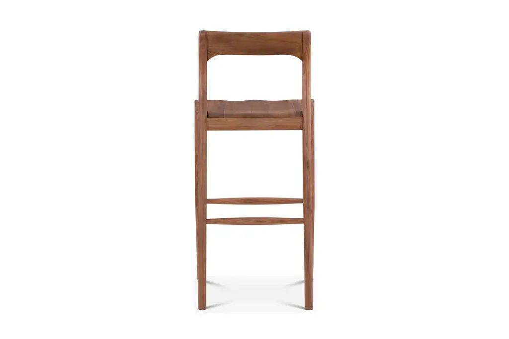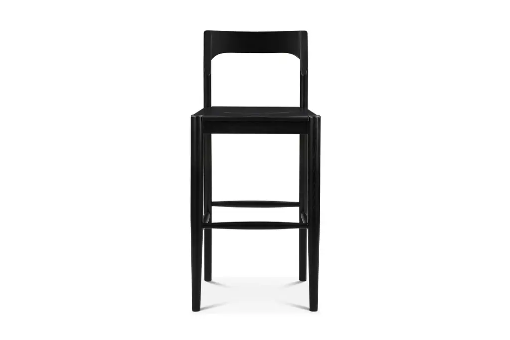 Add contemporary charm and timeless style to your kitchen or bar area with the Adler Bar Stool. Crafted from solid walnut or oak, it's available in a versatile natural or black finish, each showing off the unique characteristics of the wood grain texture. This stool features a curved open backrest for support and comfort.