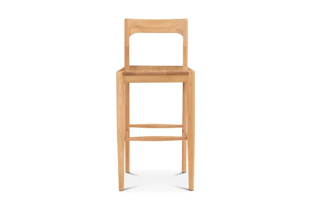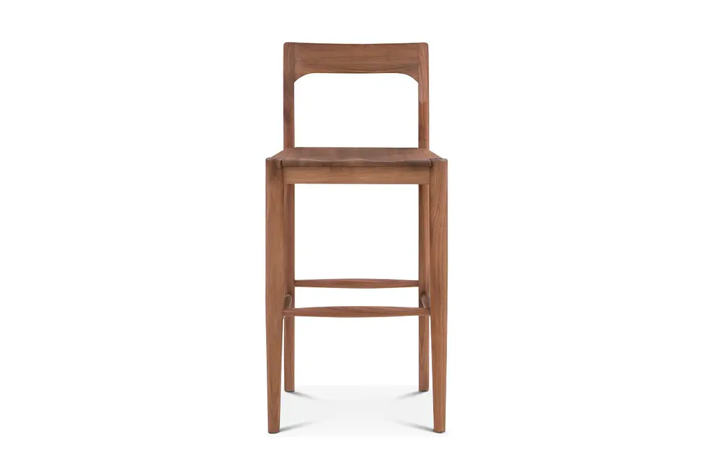 Add contemporary charm and timeless style to your kitchen or bar area with the Adler Bar Stool. Crafted from solid walnut or oak, it's available in a versatile natural or black finish, each showing off the unique characteristics of the wood grain texture. This stool features a curved open backrest for support and comfort.