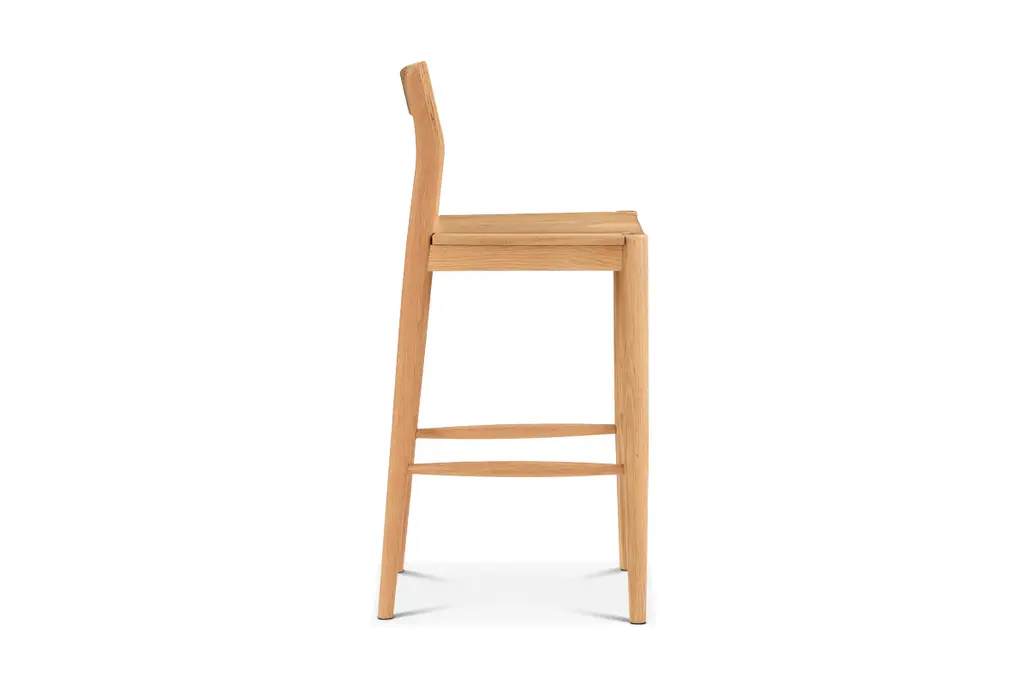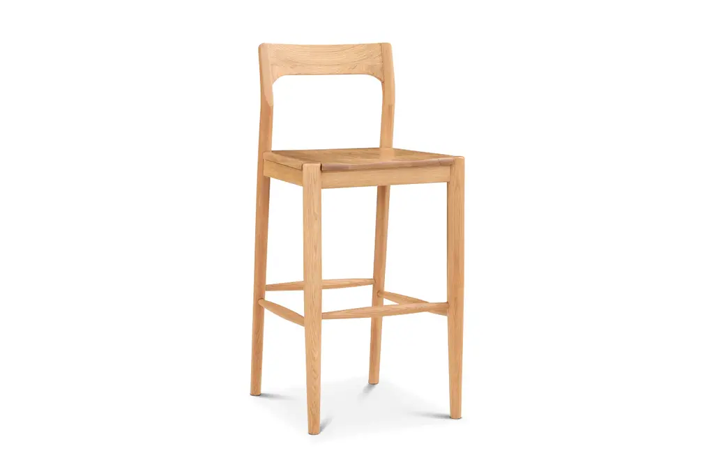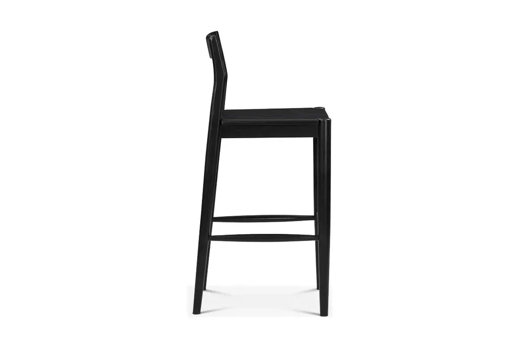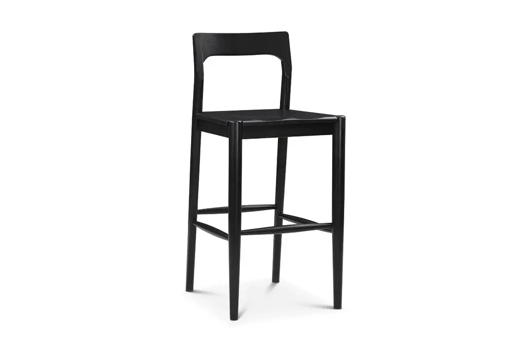 Add contemporary charm and timeless style to your kitchen or bar area with the Adler Bar Stool. Crafted from solid walnut or oak, it's available in a versatile natural or black finish, each showing off the unique characteristics of the wood grain texture. This stool features a curved open backrest for support and comfort.