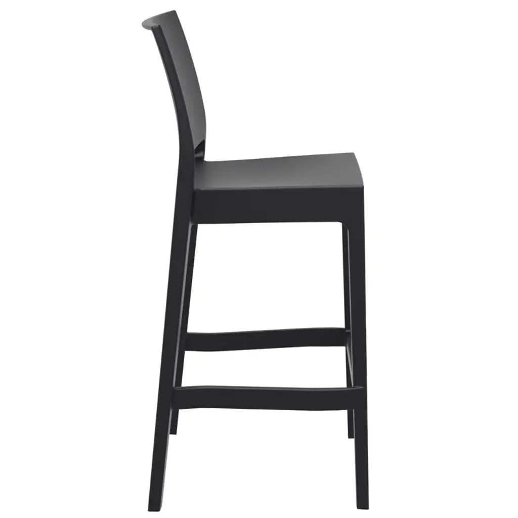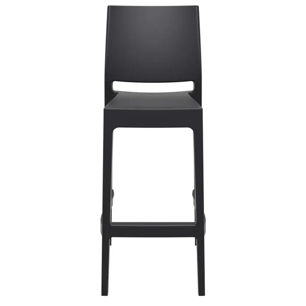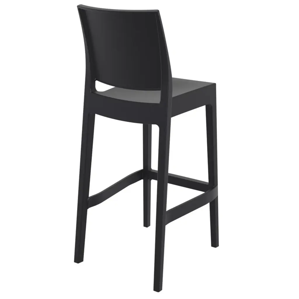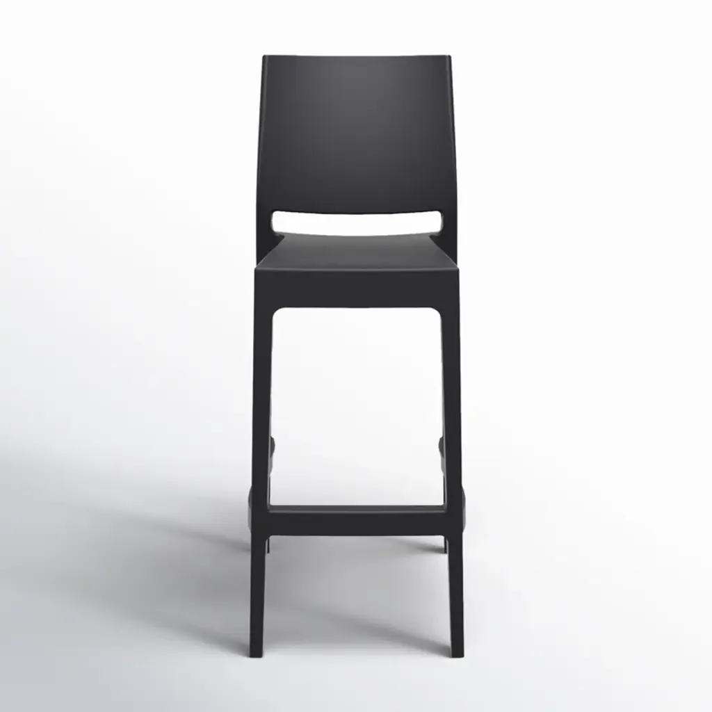 This 2-piece set of patio bar stools lets you enjoy your favorite beverage poolside or on your deck. Each stool is crafted from polypropylene, so it's resistant to UV rays, staining, water, and mildew. A sleek, solid finish of your choice makes it super-easy to match with almost any style or color scheme you want. This set features a square seat, a convenient footrest, and a full back that leans at a slight angle. Best of all, these stools are stackable for hassle-free storage when not in use. No assembly is required.