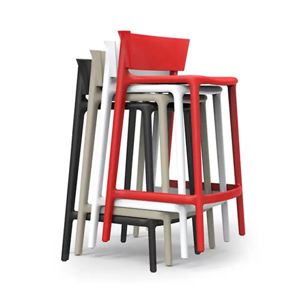 Say hello to the Africa Bar Stool - Set of 4 by Vondom, a perfect blend of simplicity and sophistication. Crafted with shock-resistant, 100% recyclable materials and a UV stabilizer, these stools are designed by Eugeni Quitllet. Whether in your dining area, kitchen, living room, or bar, they bring natural forms and serenity to your space. Following the success of the Africa chair, these stools elevate your gatherings with friends, embodying the essence of simplicity and originality. Welcome the Africa collection into your home—a growing family of timeless design.