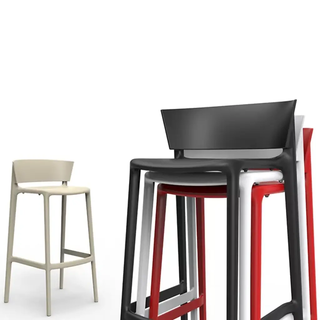 Say hello to the Africa Bar Stool - Set of 4 by Vondom, a perfect blend of simplicity and sophistication. Crafted with shock-resistant, 100% recyclable materials and a UV stabilizer, these stools are designed by Eugeni Quitllet. Whether in your dining area, kitchen, living room, or bar, they bring natural forms and serenity to your space. Following the success of the Africa chair, these stools elevate your gatherings with friends, embodying the essence of simplicity and originality. Welcome the Africa collection into your home—a growing family of timeless design.
