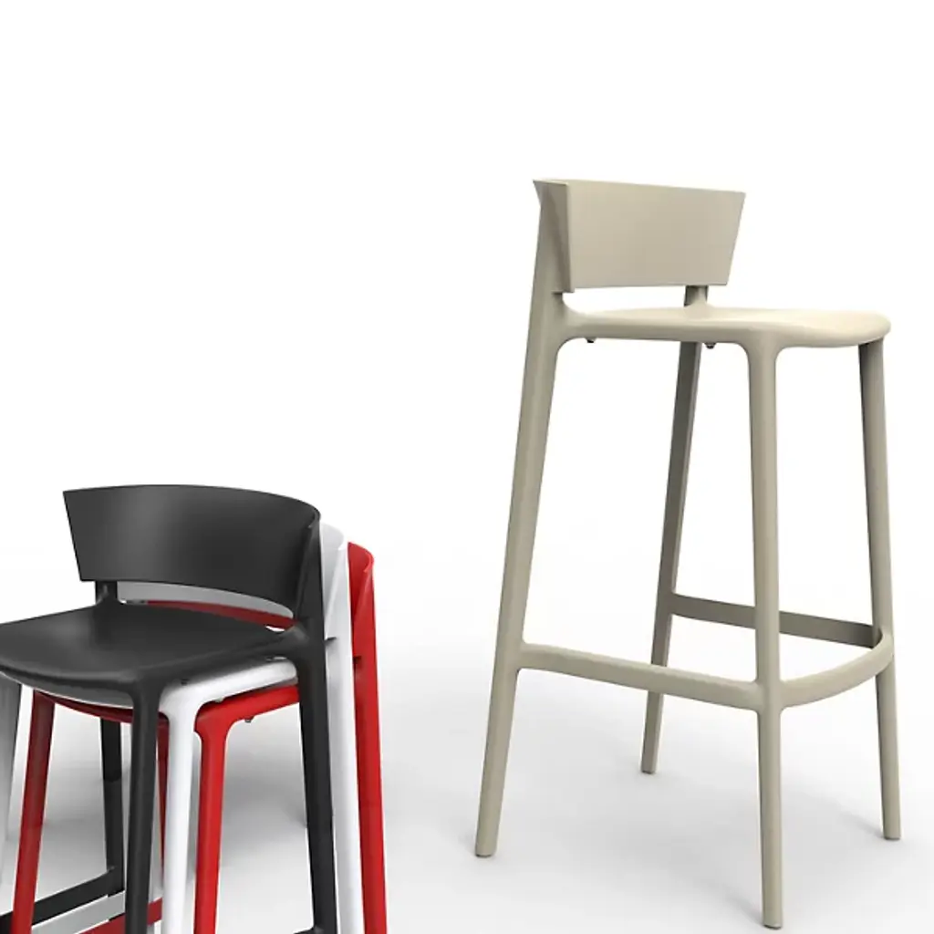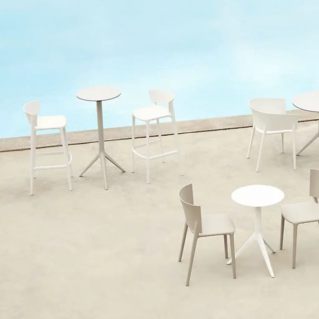 Say hello to the Africa Bar Stool - Set of 4 by Vondom, a perfect blend of simplicity and sophistication. Crafted with shock-resistant, 100% recyclable materials and a UV stabilizer, these stools are designed by Eugeni Quitllet. Whether in your dining area, kitchen, living room, or bar, they bring natural forms and serenity to your space. Following the success of the Africa chair, these stools elevate your gatherings with friends, embodying the essence of simplicity and originality. Welcome the Africa collection into your home—a growing family of timeless design.