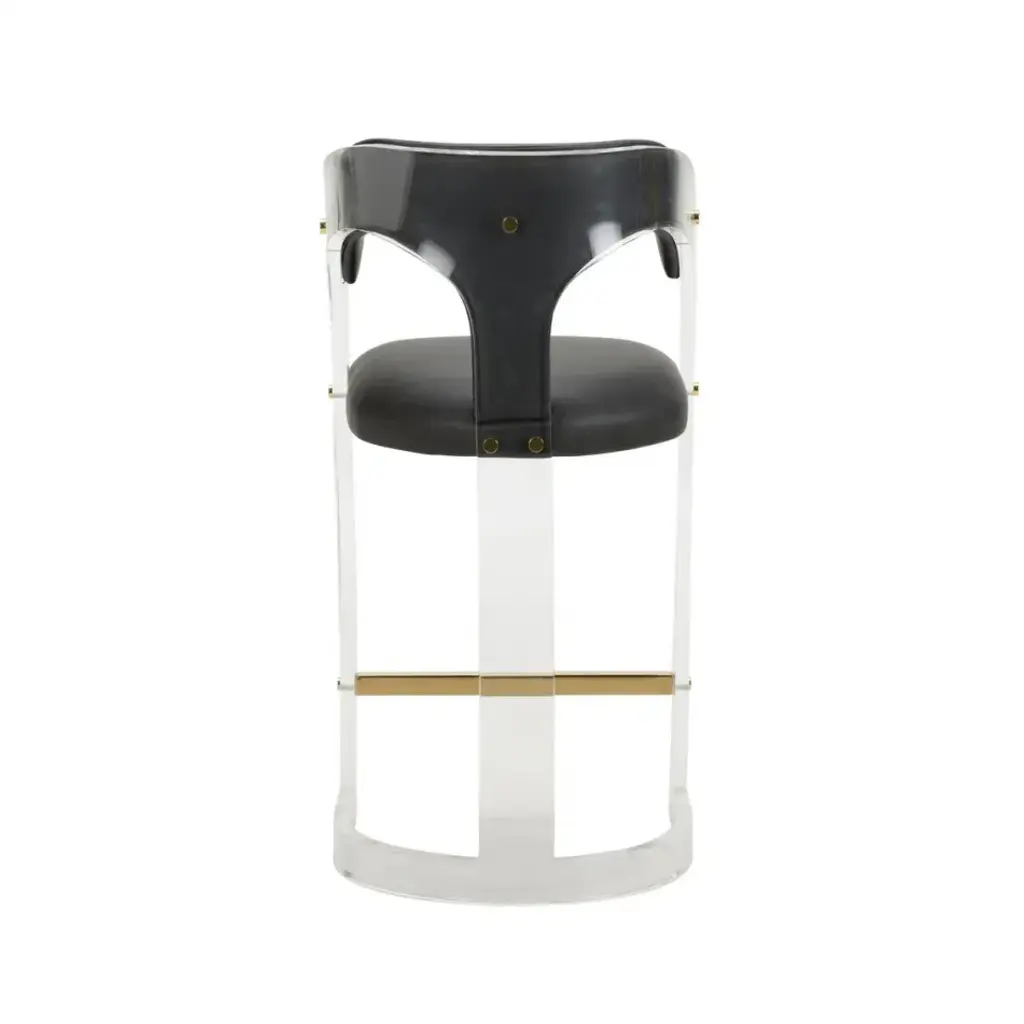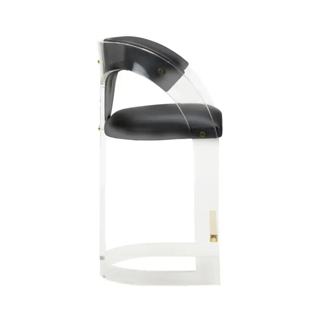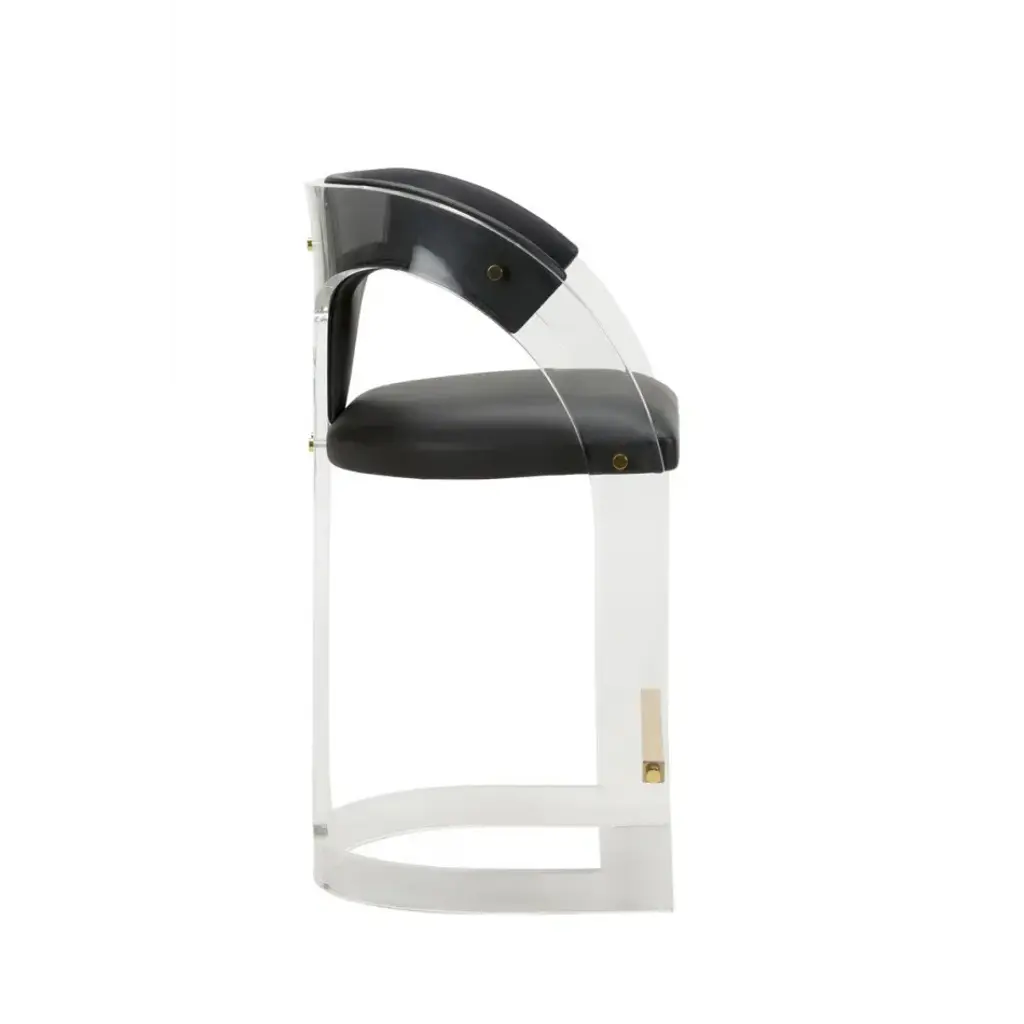 MAKE A BOLD STATEMENT IN YOUR CONTEMPORARY HOME OR OFFICE WITH AFTER MIDNIGHT BAR STOOL. IT FEATURES A CLEAR ACRYLIC FRAME WITH A CURVED SHAPE AND POLISHED NICKEL FOOTREST. THE SOFT, BLACK FAUX LEATHER ADDS COMFORT TO THE DESIGN AND BLENDS WITH ANY EXISTING DECOR.