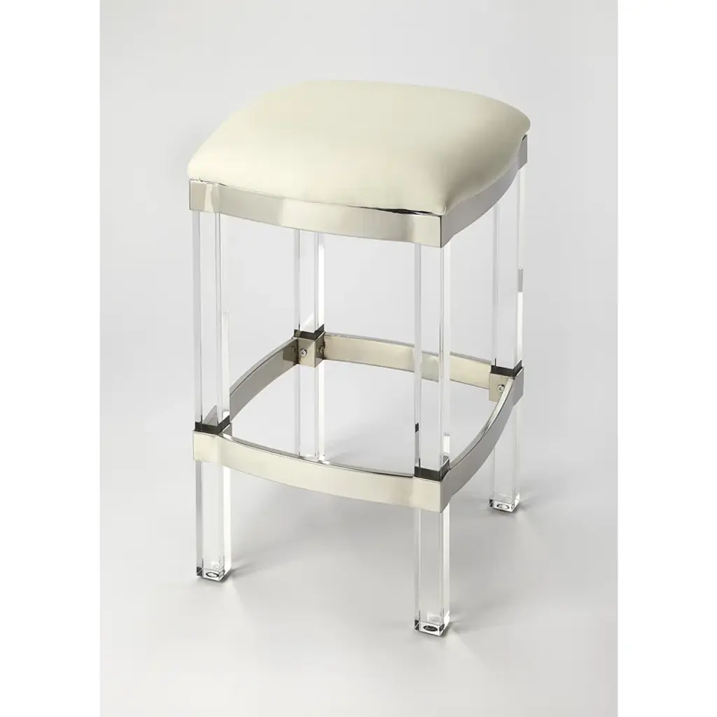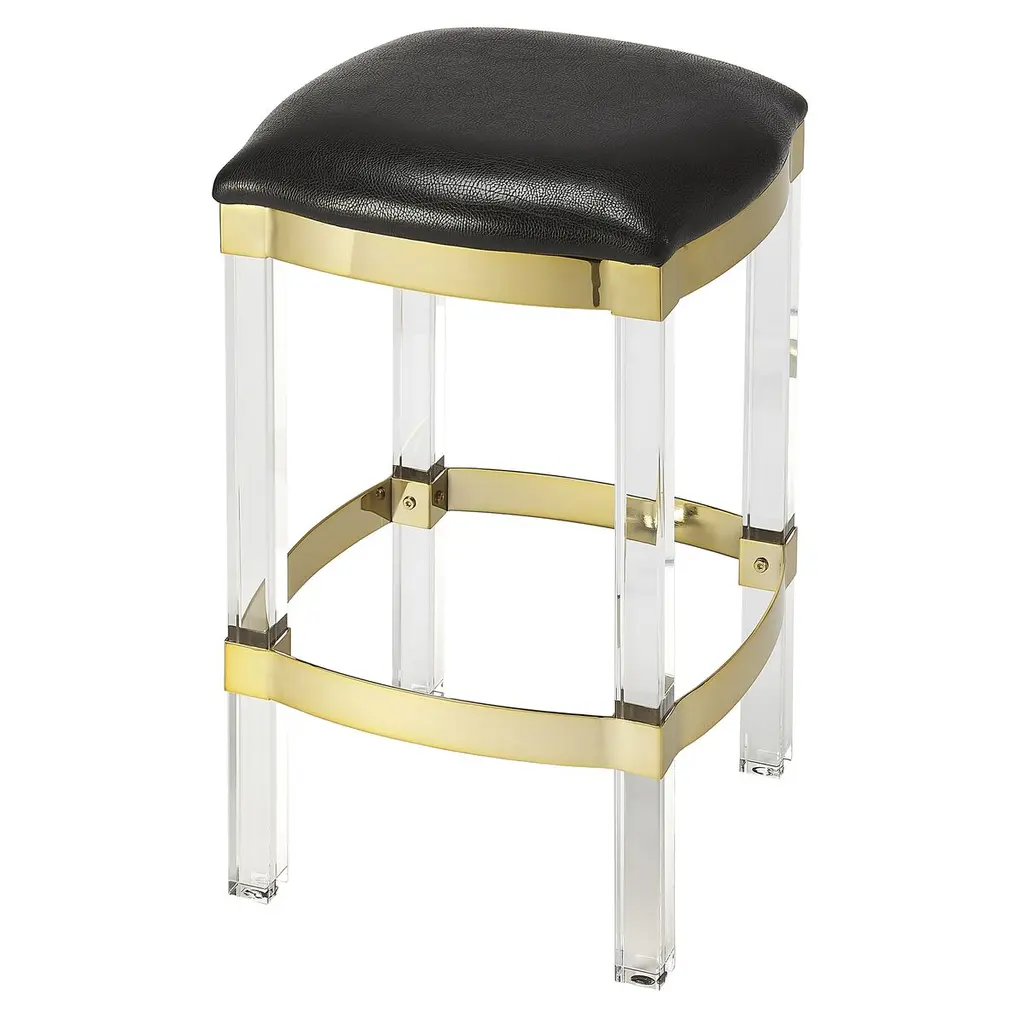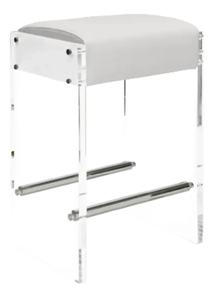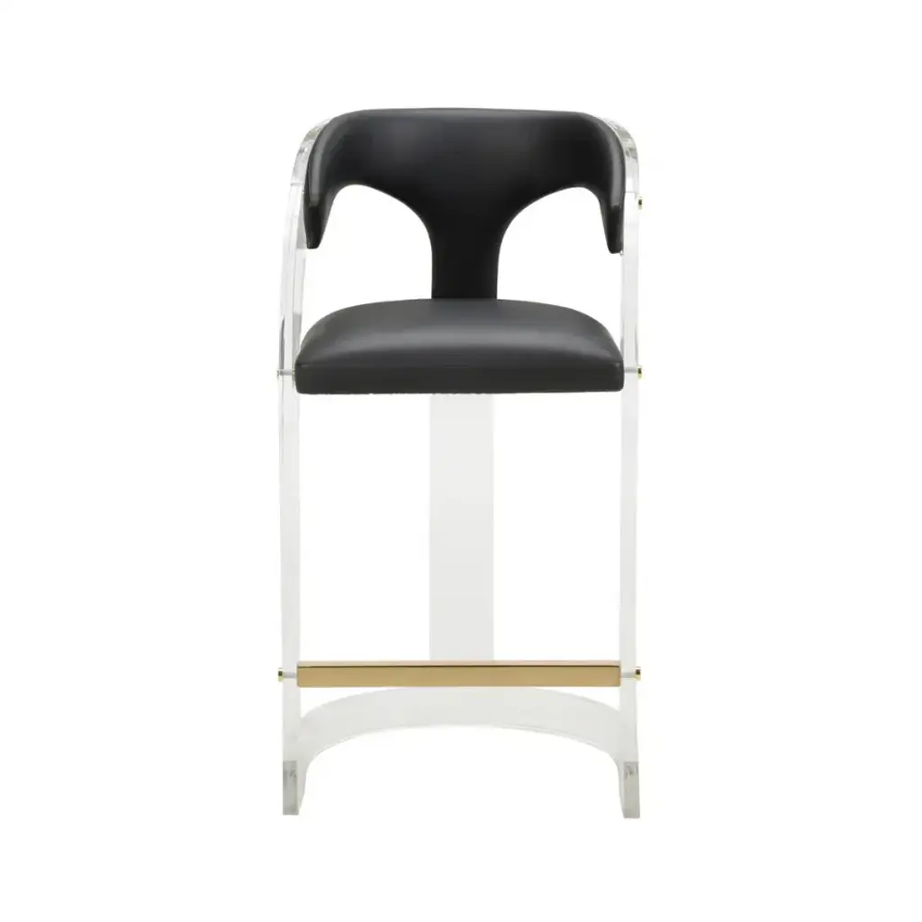 MAKE A BOLD STATEMENT IN YOUR CONTEMPORARY HOME OR OFFICE WITH AFTER MIDNIGHT BAR STOOL. IT FEATURES A CLEAR ACRYLIC FRAME WITH A CURVED SHAPE AND POLISHED NICKEL FOOTREST. THE SOFT, BLACK FAUX LEATHER ADDS COMFORT TO THE DESIGN AND BLENDS WITH ANY EXISTING DECOR.