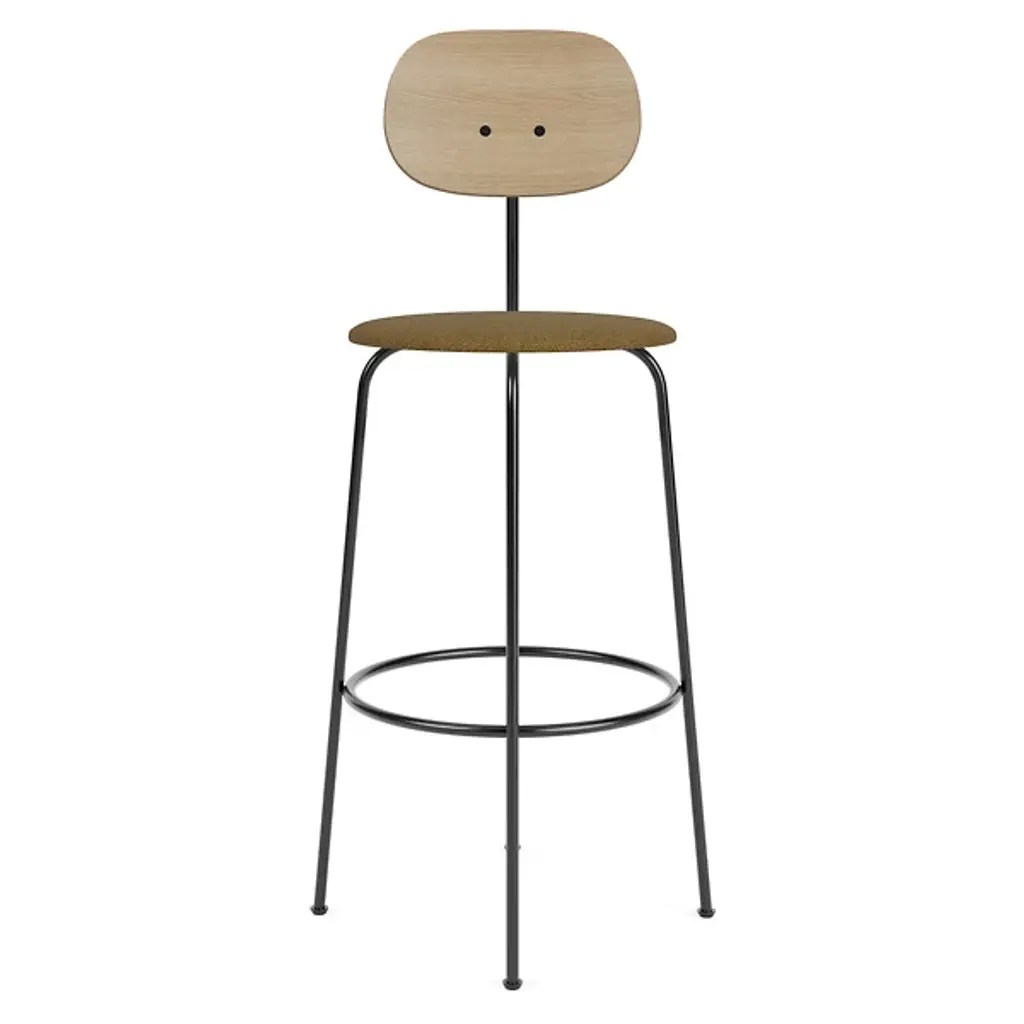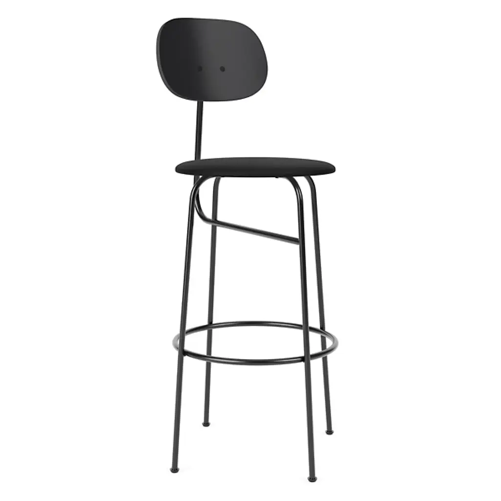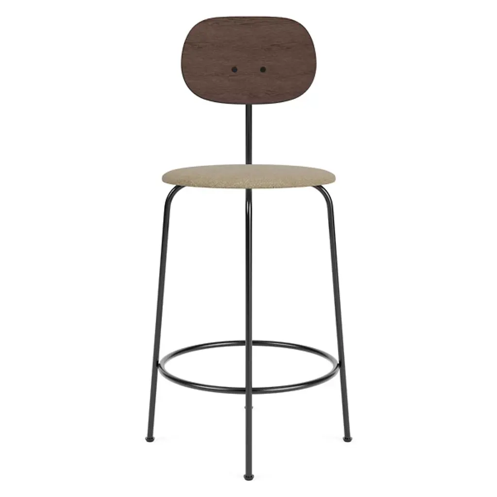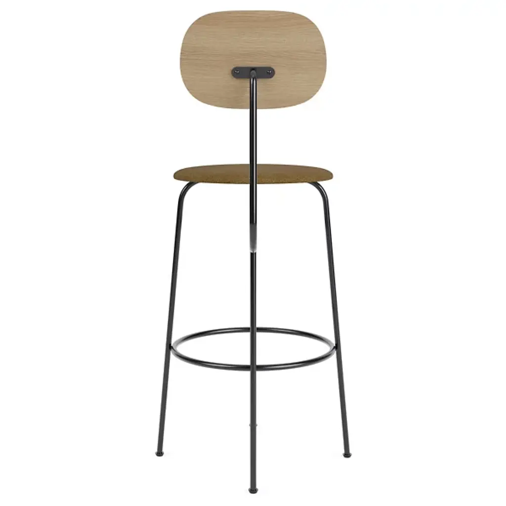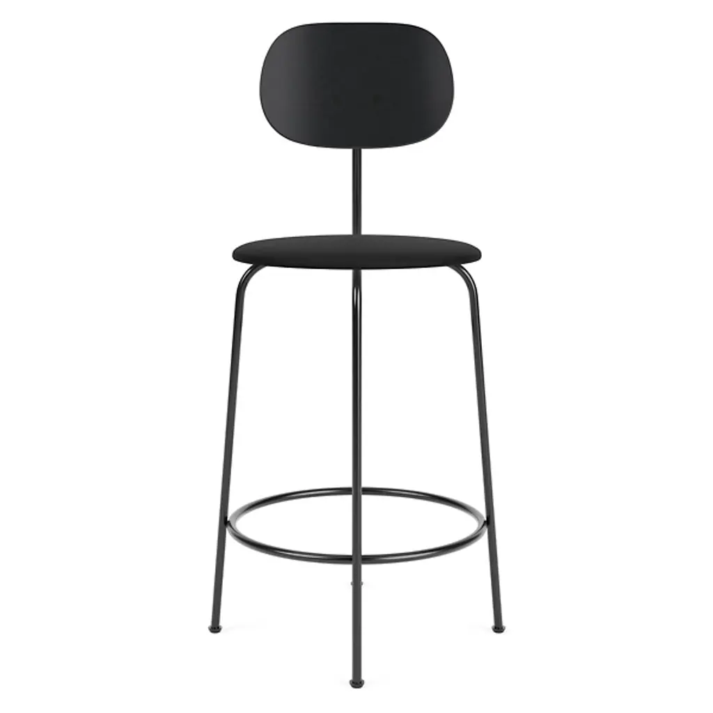Toast to good times with the Afteroom Plus Counter/Bar Stool, Upholstered Seat from Audo Copenhagen. An open and expressive design from Afteroom, crafted in the Scandinavian stylistic tradition, its open construction contrasts the seat and back with the lower legs. The fluid look of the powder-coated steel framework provides contemporary flair. The ring-shaped steel contours keep the legs stable as you rest comfortably on a round, upholstered seat filled with soft foam, while the seat itself is BIFMA Certified compliant as a testament to its superb quality.