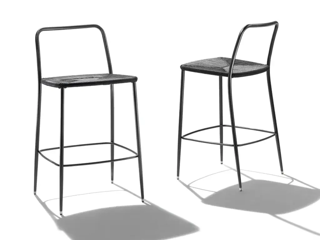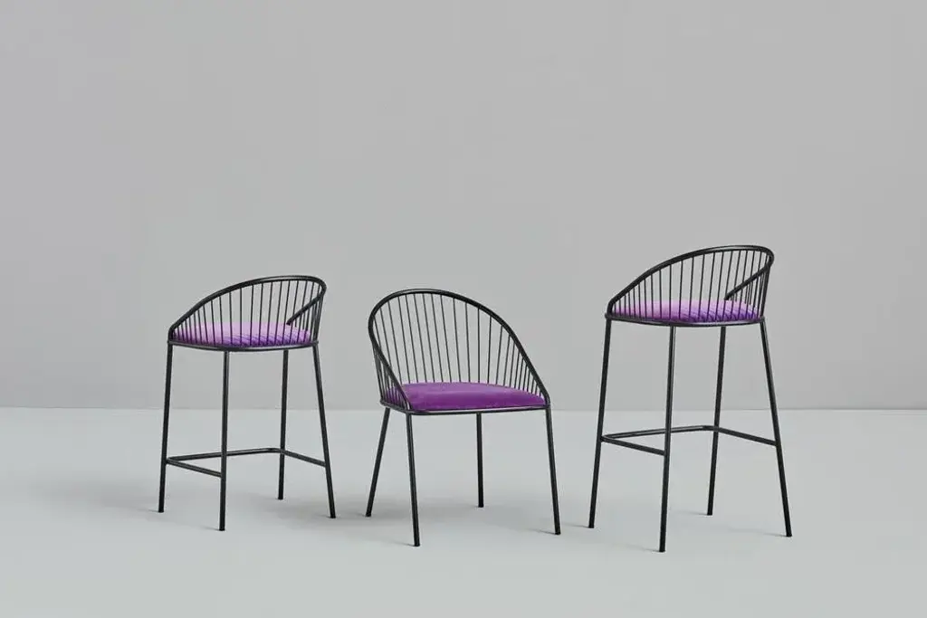 Agora bar low stool by pepe albargues. Dimensions: w 50 x d 52 x h 87 cm. Seat 67 cm. Materials: iron structure and particles board. Foam cmhr (high resilience and flame retardant). Now suitable also for sheltered outdoor spaces. Painted or chromed iron structure. Available in different finishes and dimensions. Agora bar stool has two different heights featuring a remarkable architectural wire backrest that brings a graphic and unique touch of elegance for any decorative areas. Vintage and modern lines have been exquisitely combined together to offer a contemporary and minimal design emphasizing its backrest. This piece is attributed to the mentioned designer/maker. It has no attribution mark and no official proof of authenticity, however it is well documented in design history. I take full responsibility for any authenticity issues arising from misattribution
