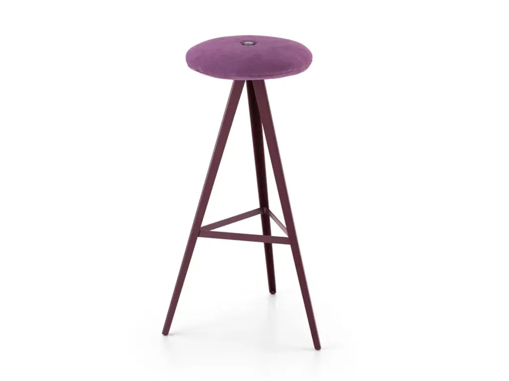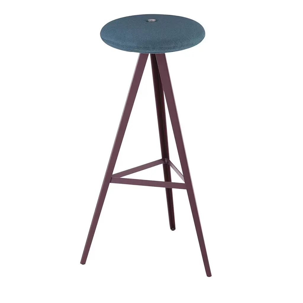 High bar stool with painted metal structure and and ash massel seat or padded fabric seat from the AKY collection, designed by Emilio Nanni.