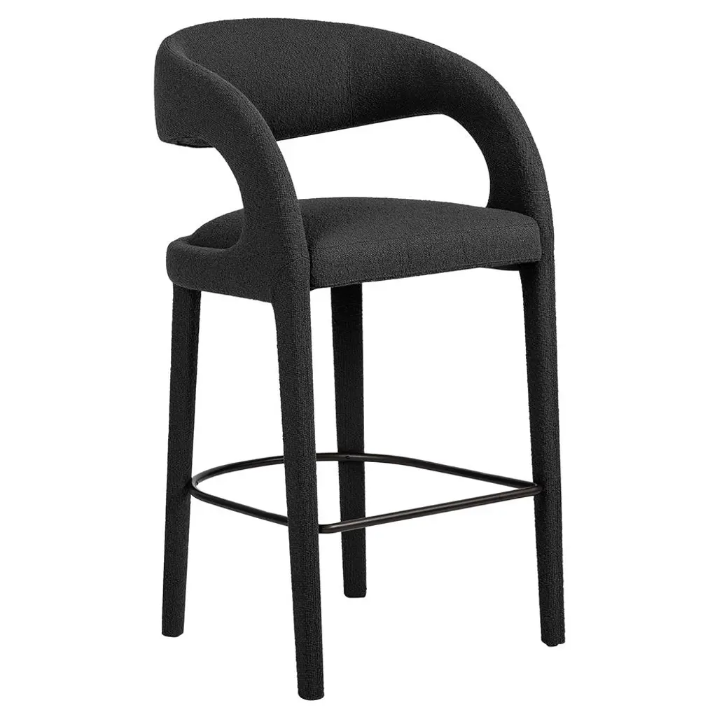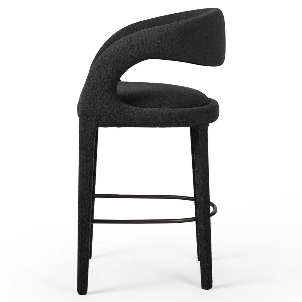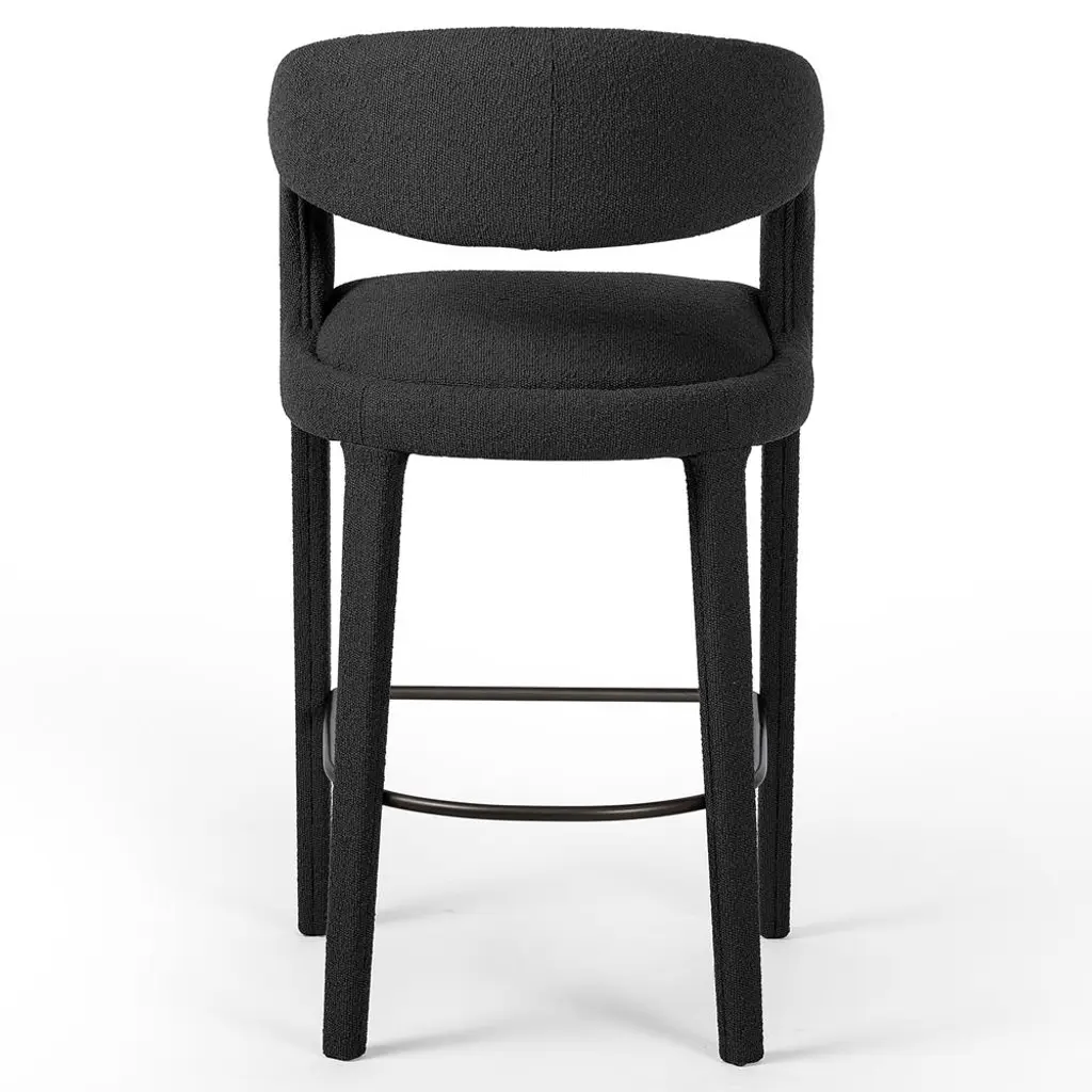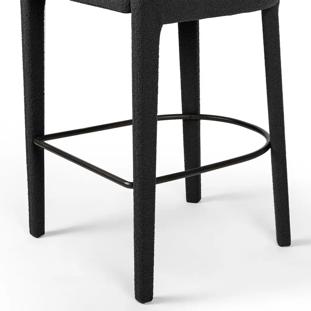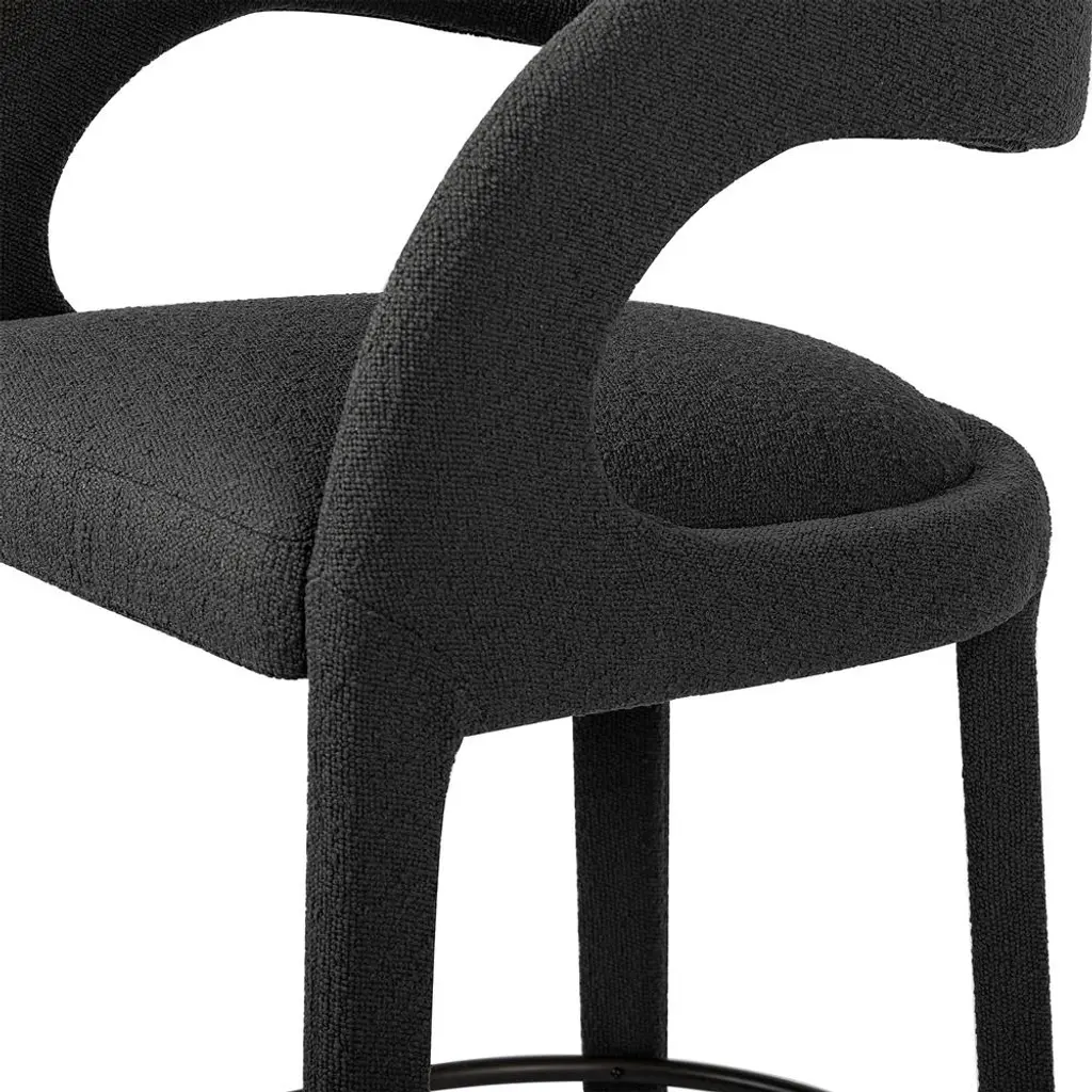 Alexander Mid Century Charcoal Black Performance Boucle Iron Frame Bar Stool