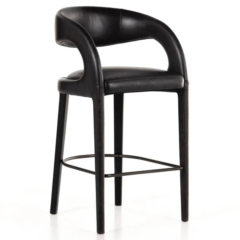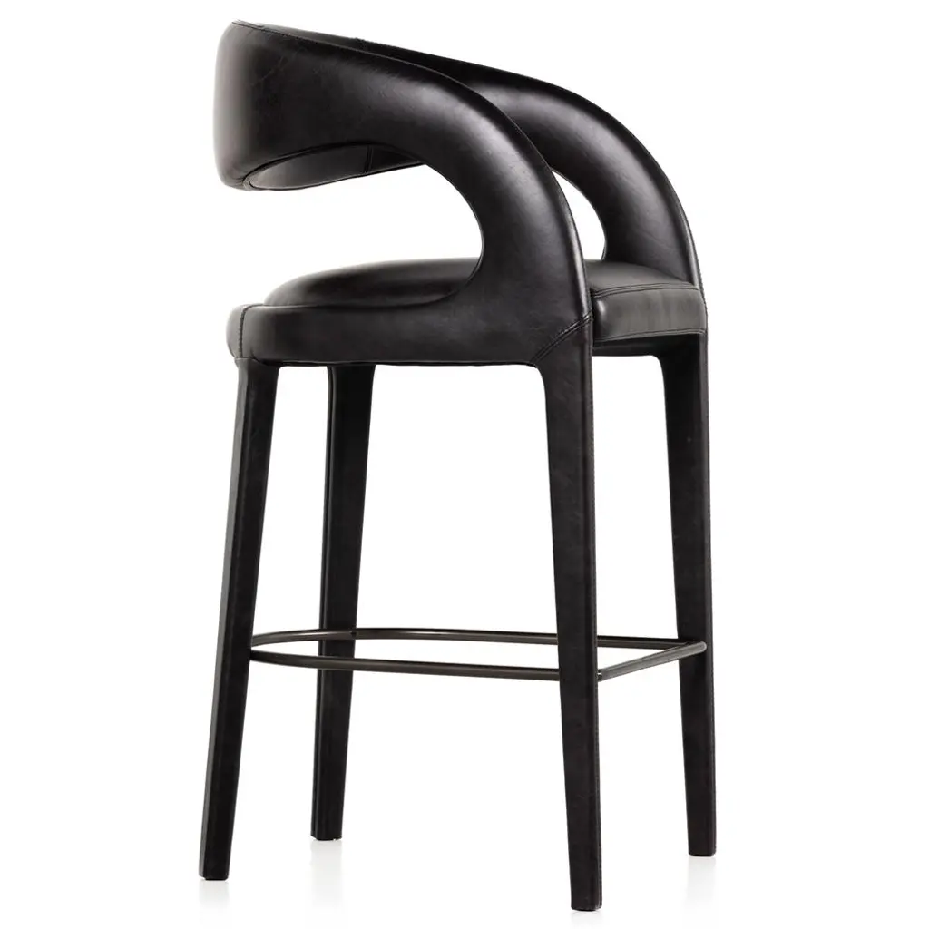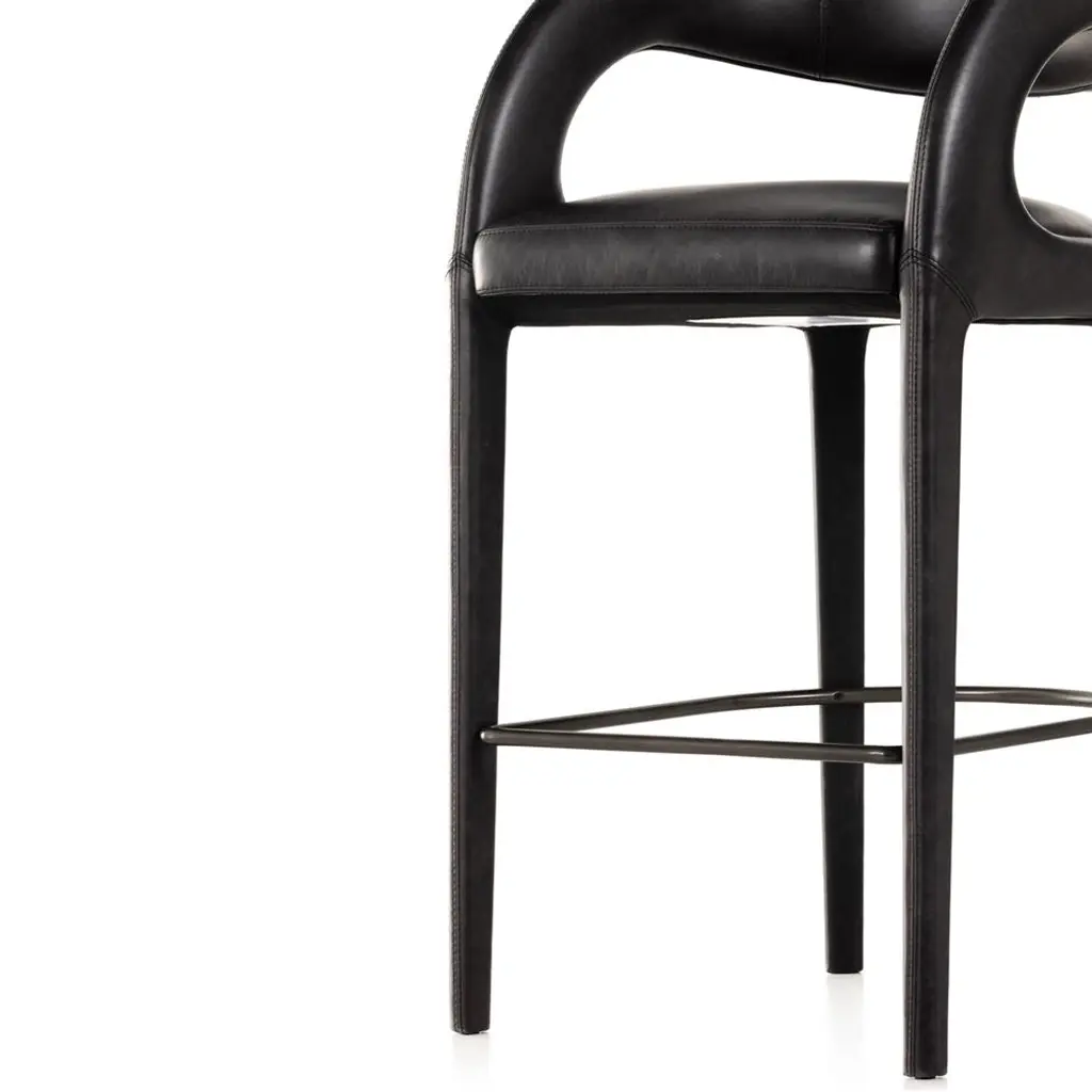 Alexander Mid Century Modern Black Leather Upholstered Iron Frame Bar Stool