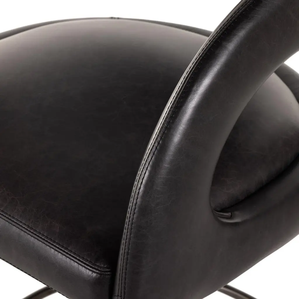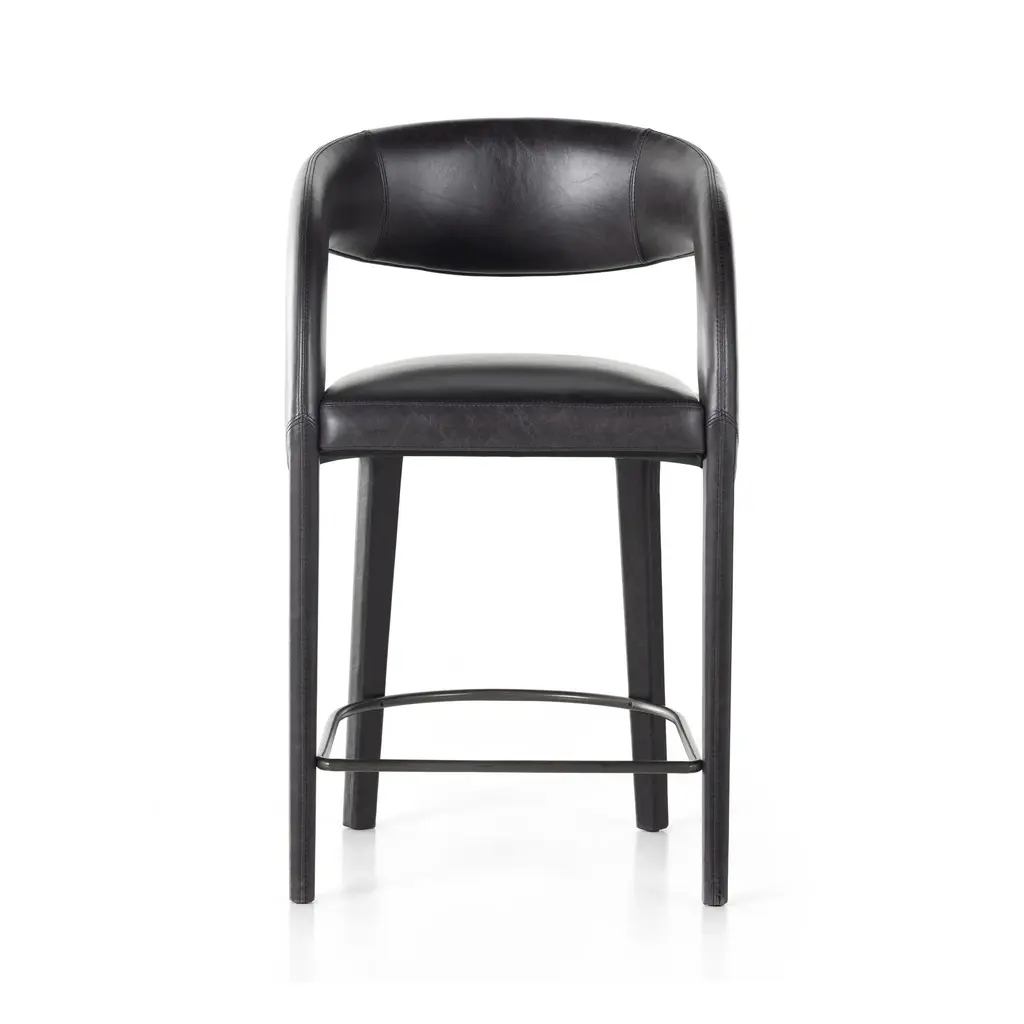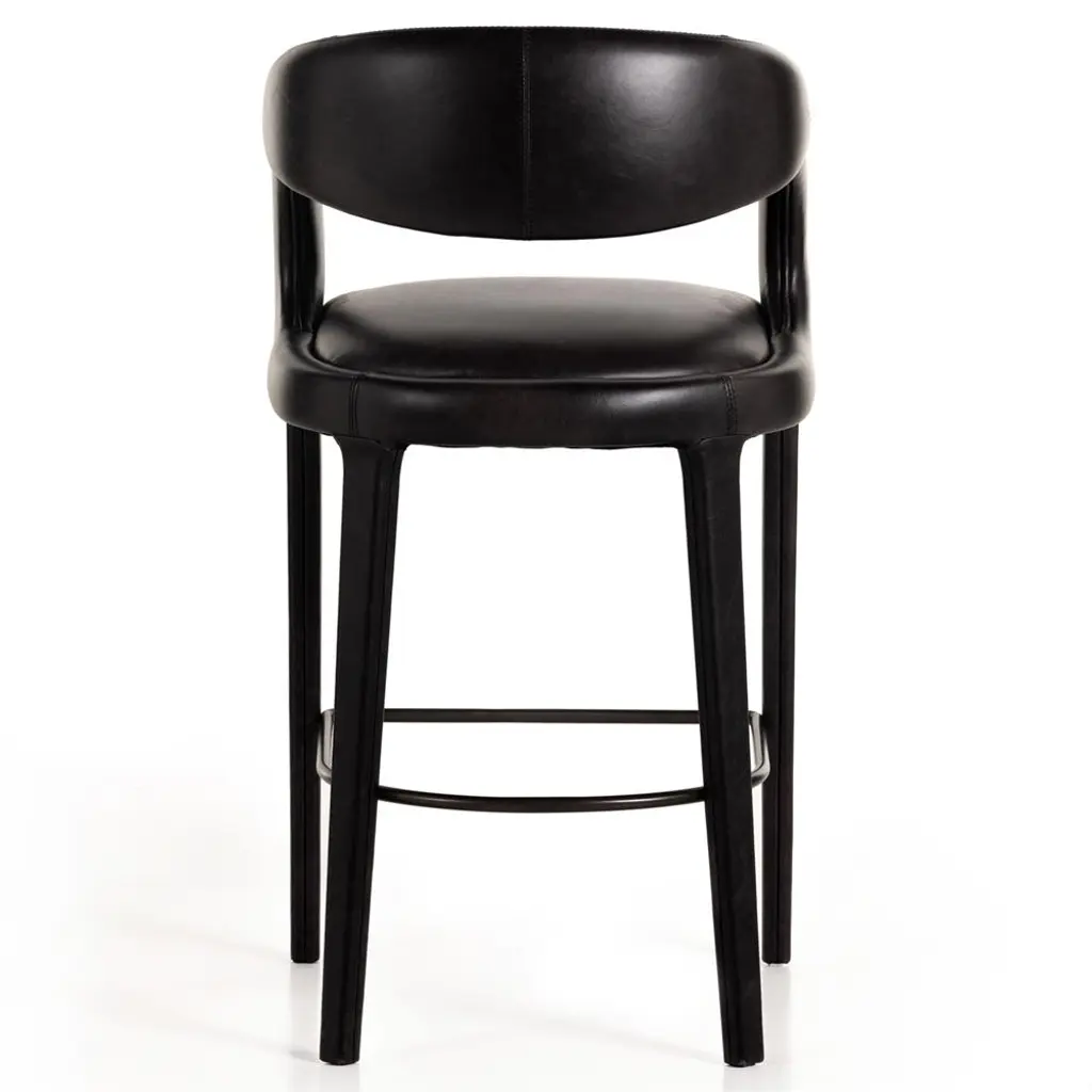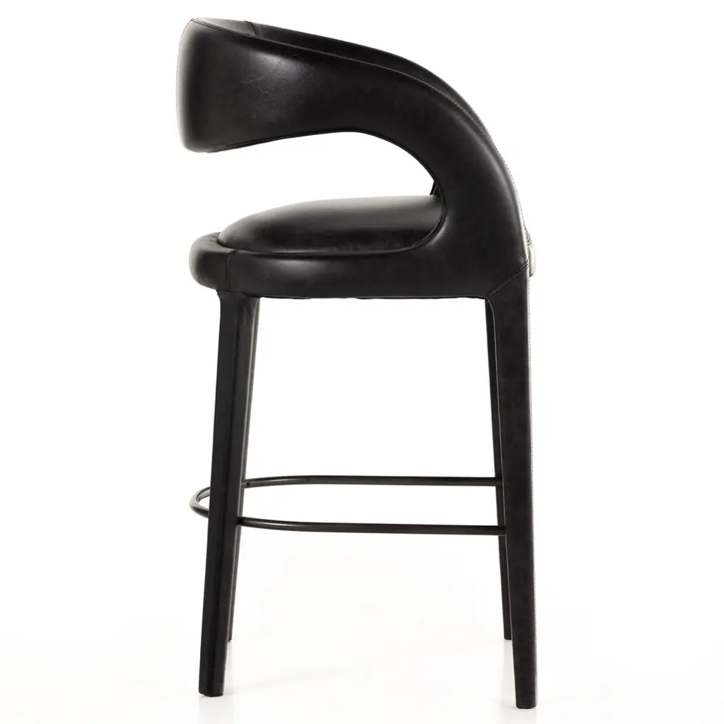 Alexander Mid Century Modern Black Leather Upholstered Iron Frame Bar Stool