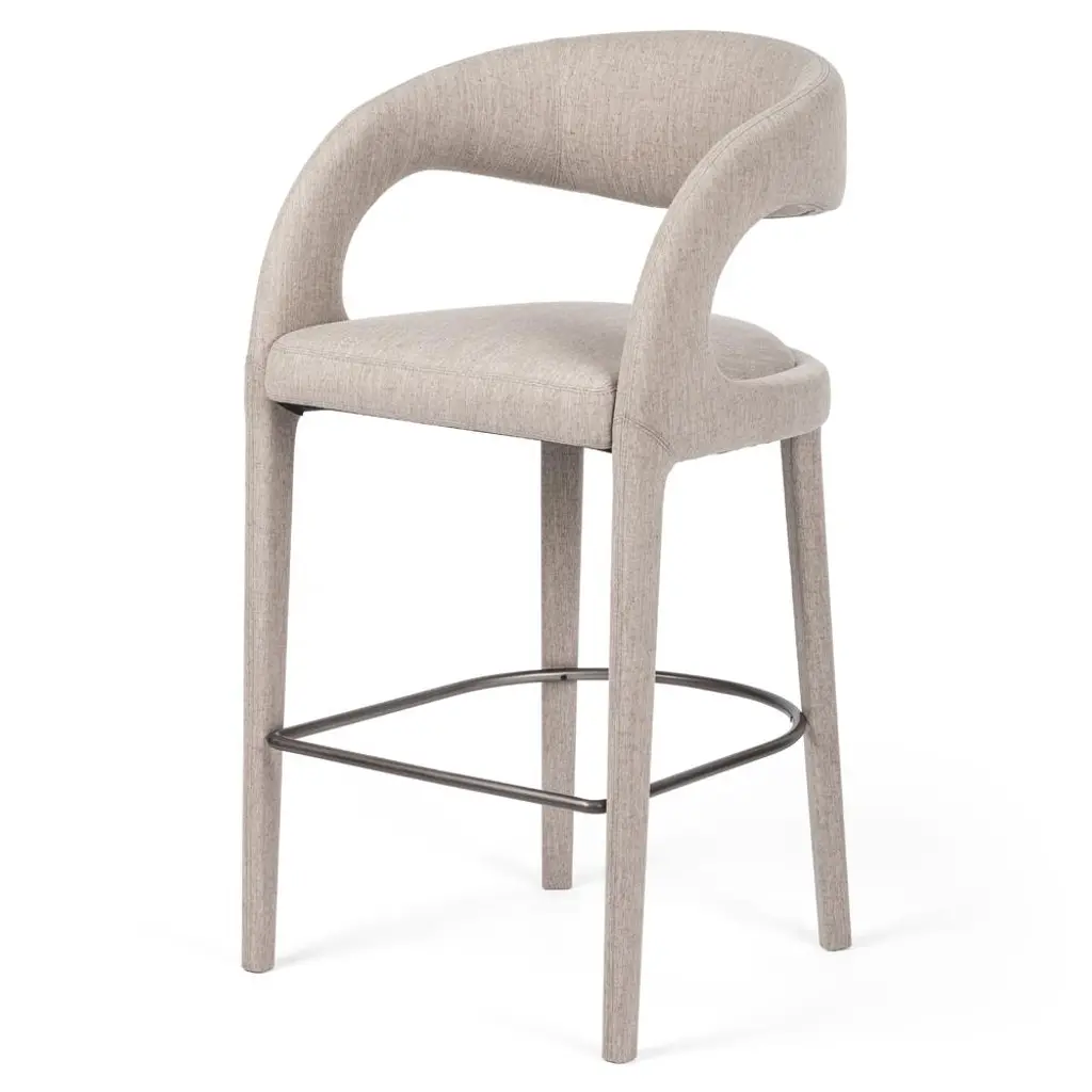 Alexander Mid Century Modern Light Grey Performance Iron Frame Bar Stool