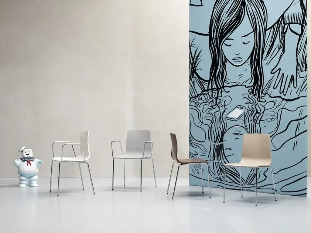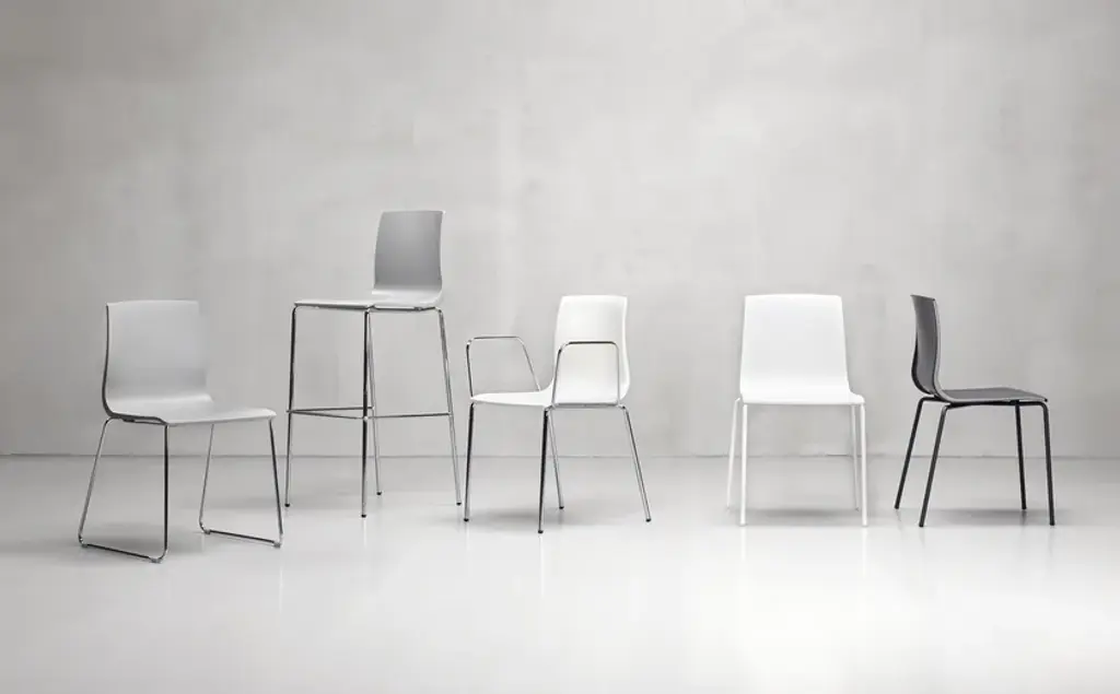 PURCHASE INFORMATION : Price includes 2 pcs. with the same configuration.Alice family in technopolymer by Scab Design is characterized by a sober and elegant design, Alice fits in perfectly with the various contexts of use, whether homes, offices or collective. Its versatility is defined by the quest for a minimalist aesthetic shape, refined in the finishing details, like the continuous border on the back of the chair, the contrast between the opaque front and the glossy back and the characteristic ergonomic line, guaranteeing maximum postural comfort for the user. This product inspires “sobriety” through its design recognizable for the rigour of the highly characterizing design lines. Alice is available in several variants: with a chrome-plated or coated frame and four legs with or without arms, with chrome-plated sledge frame or as barstool in two heights. Colors available: linen, cocoa, anthracite, dove grey, light grey.