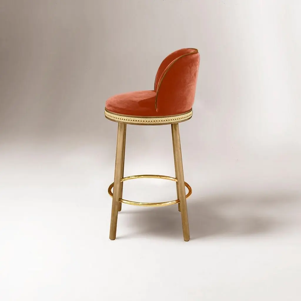 Alma Bar Stool, Natural Oak/polished Brass/papaye