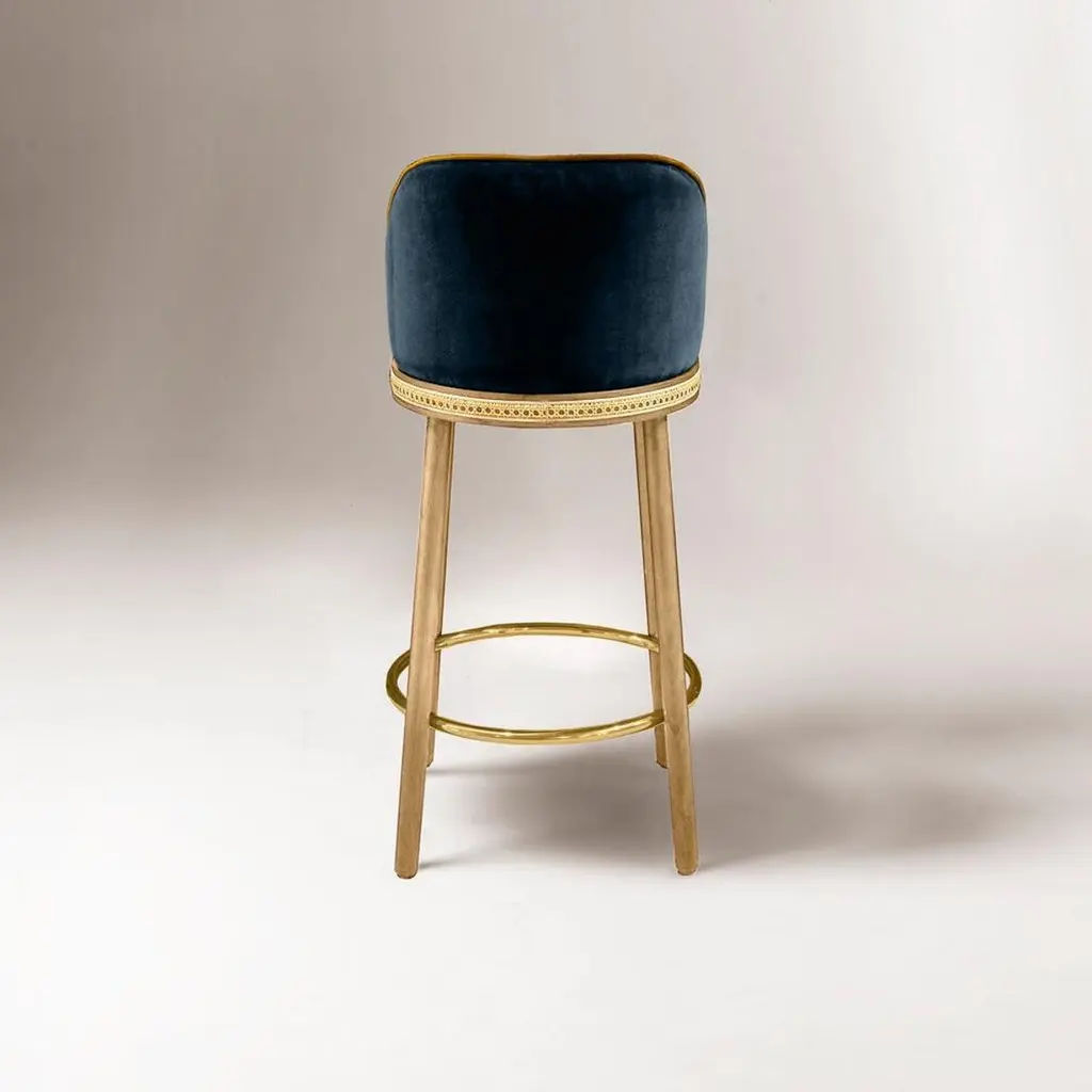 Alma Bar Stool, Natural Oak/satin Brass/maditerranee