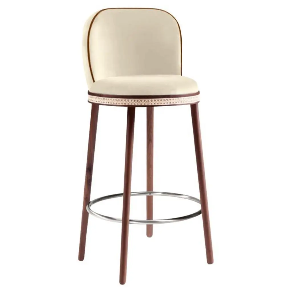 Alma Bar Stool, Natural Walnut/polished Nickel/dune