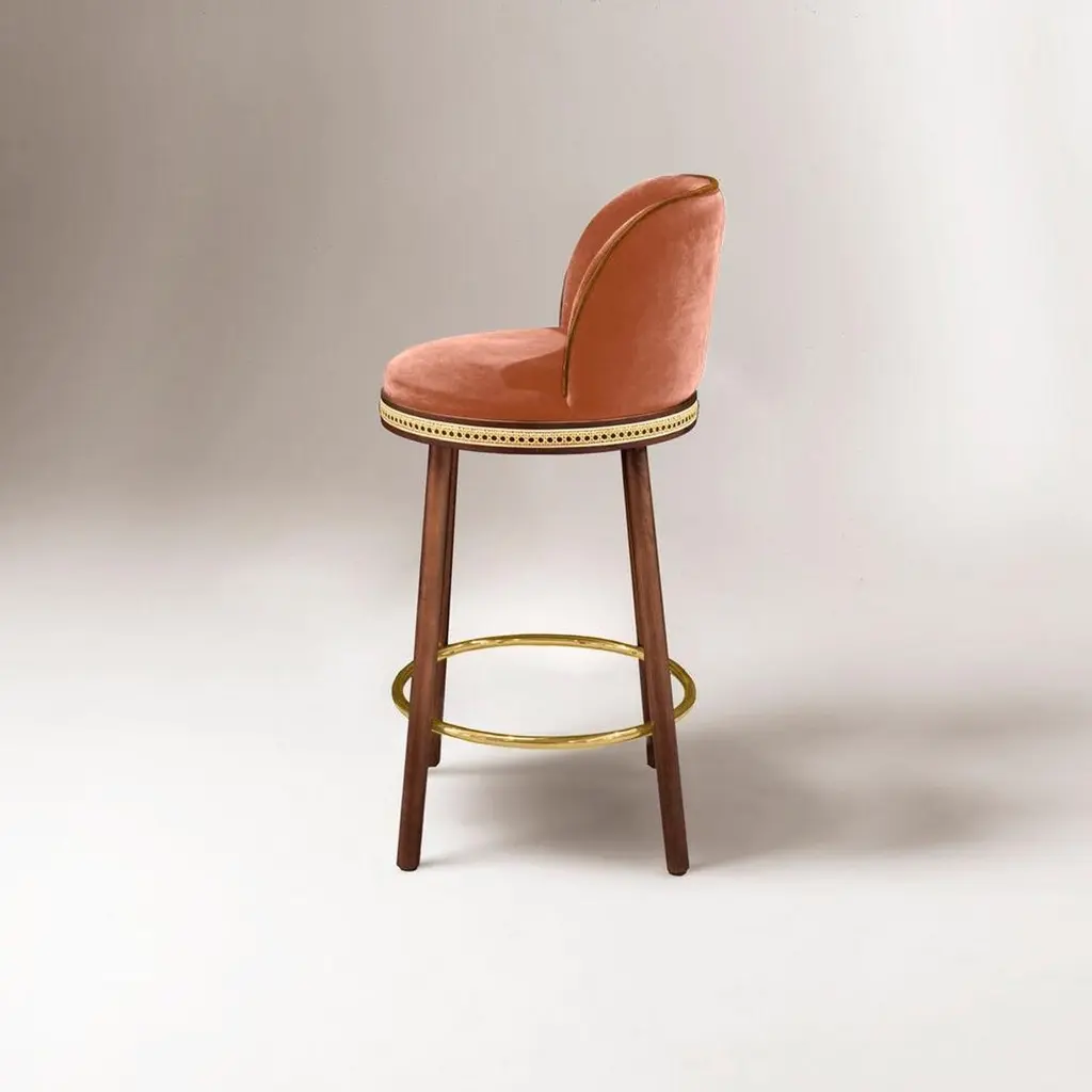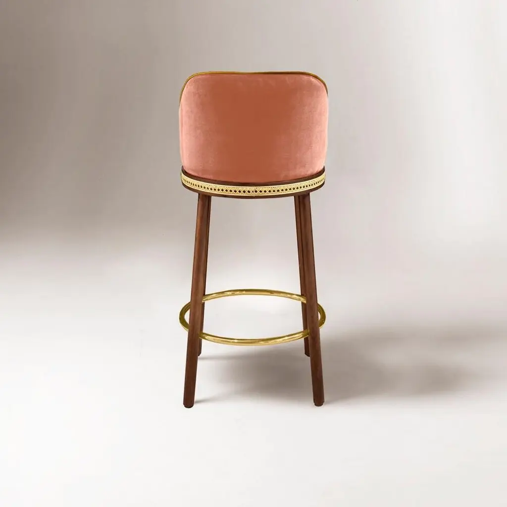 Alma Bar Stool, Natural Walnut/satin Brass/powder