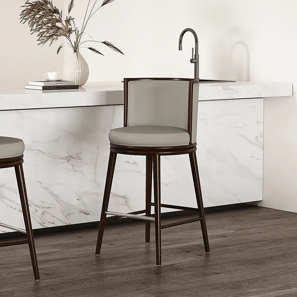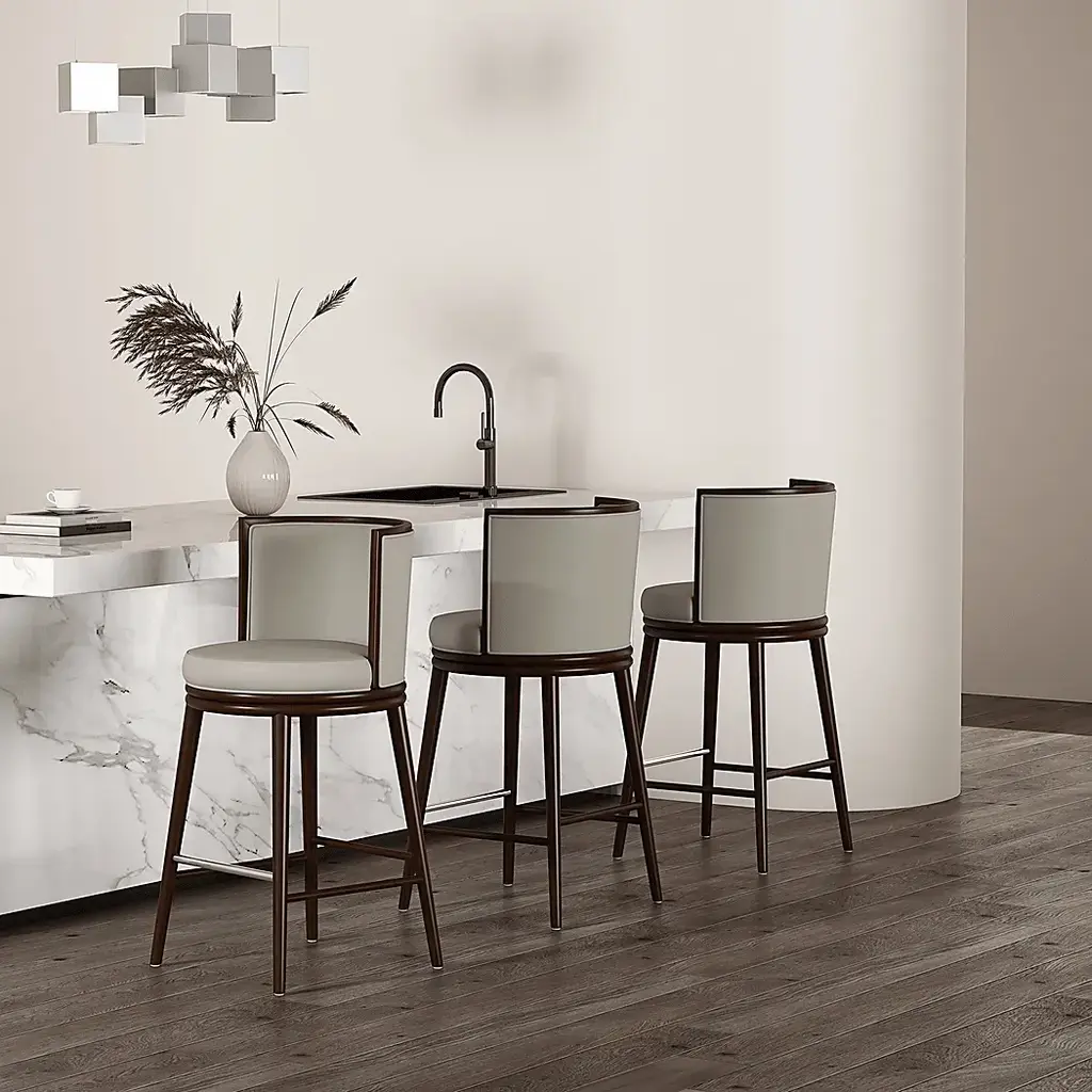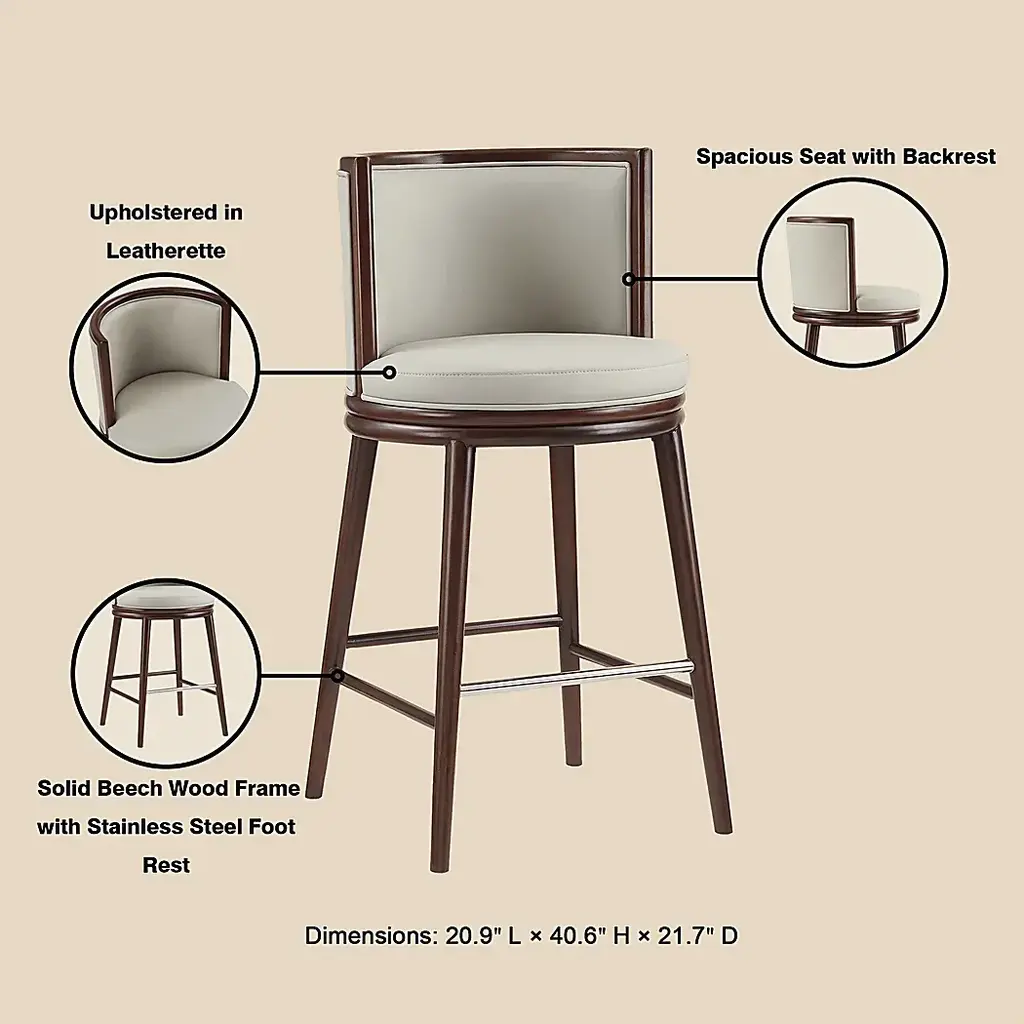 Elevate your home with the timeless elegance of the Alphadream II stone gray barstool. Designed with sophistication and comfort in mind, each stool features a sturdy beech wood frame, plush foam cushioning, and sumptuous upholstery that invites you to relax in style. A sleek metal footrest adds a touch of luxury, making this stool a seamless blend of form and function. Whether adorning a modern kitchen island or a chic home bar, these stools bring warmth, refinement, and a statement of contemporary elegance to any space.
