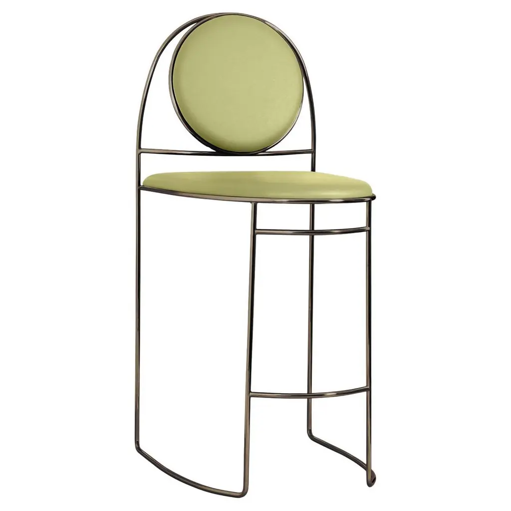 Metal stool with footrest with seat and possible padded back with velvet covering.