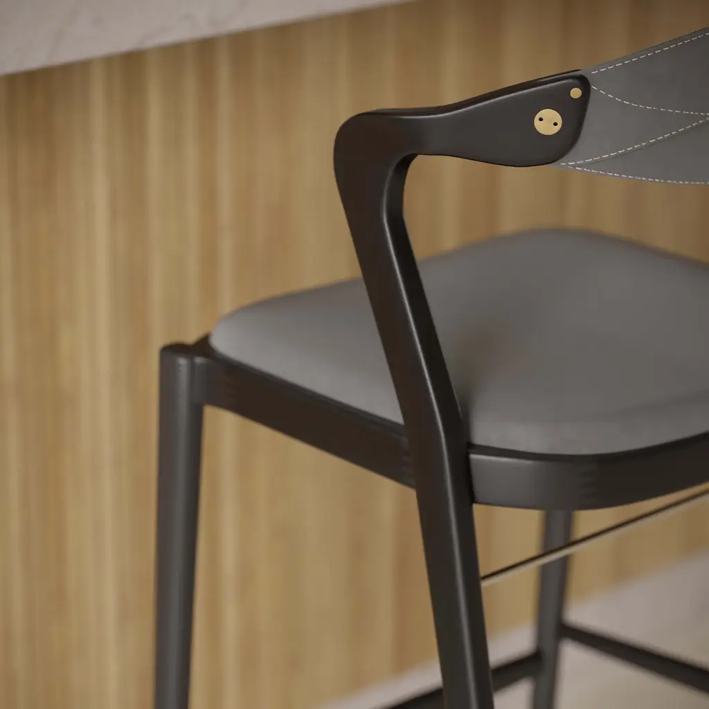The Angela Barstool from Sossego exudes luxury with its mixed-media design of rich wood, smooth leather, and metallic accents. Its comfortable and stable seat fits all shapes and sizes, allowing for easy swinging in and out. Handcrafted from sustainable Brazilian hardwood, each purchase funds the planting of a tree to replenish resources. Elevate your space with the modern elegance of the Angela Barstool. Highlights