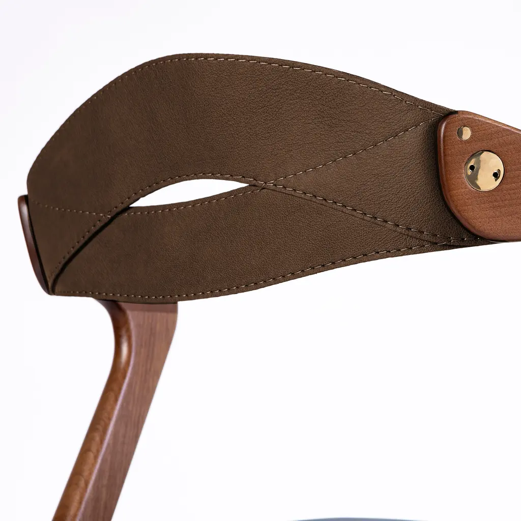 The Angela Barstool from Sossego exudes luxury with its mixed-media design of rich wood, smooth leather, and metallic accents. Its comfortable and stable seat fits all shapes and sizes, allowing for easy swinging in and out. Handcrafted from sustainable Brazilian hardwood, each purchase funds the planting of a tree to replenish resources. Elevate your space with the modern elegance of the Angela Barstool. Highlights