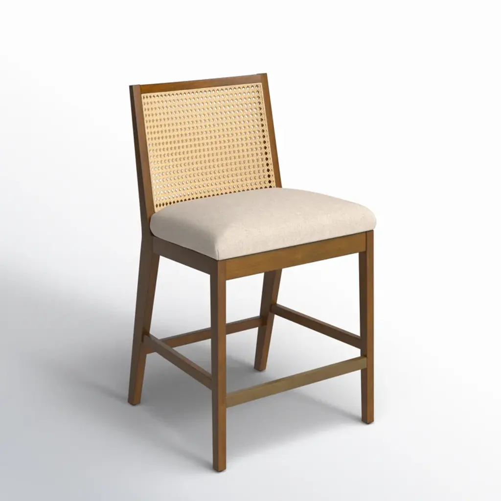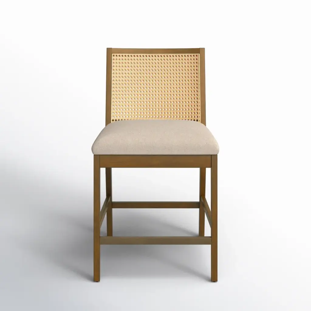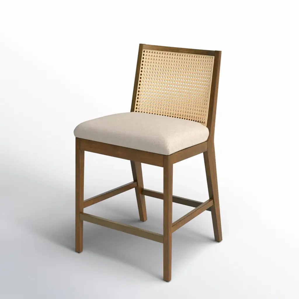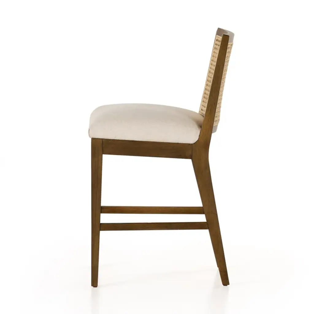Light-Toasted parawood frames a textural inlay of Natural cane for a clean, monochromatic look, with seating of performance fabric for smart sensibility. Perfectly sized for the bar, with a brass kick plate for comfort and contrast. Performance fabrics are specially created to withstand spills, stains, high traffic and wear, ensuring long-term comfort and unmatched durability.
