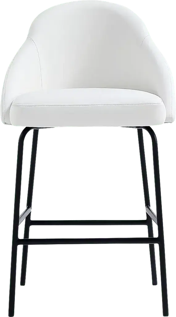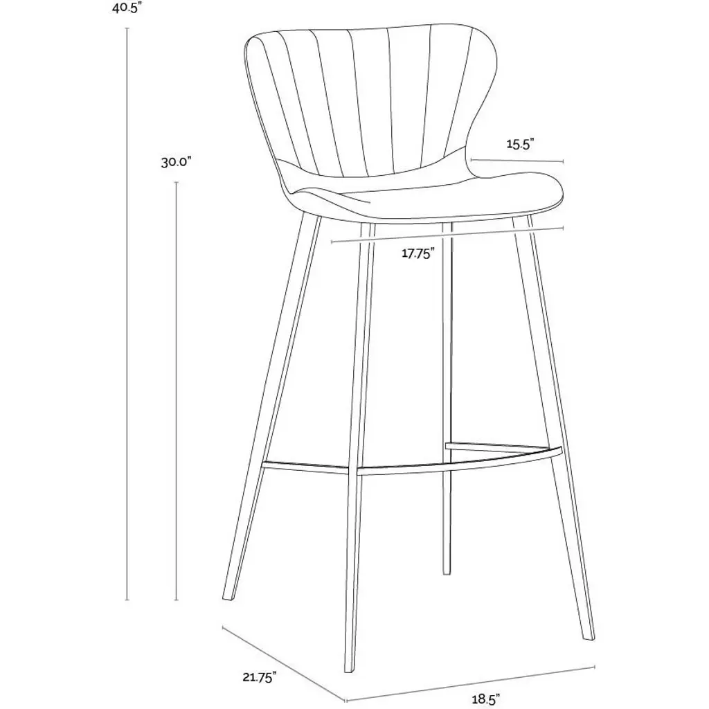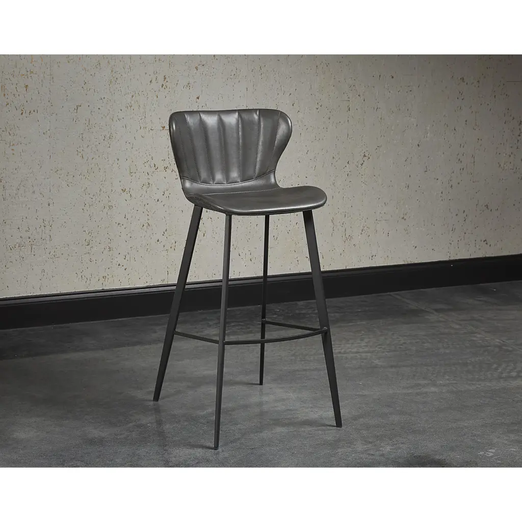 A compact barstool designed with a modern, feminine style. Features clamshell style tufting on the seatback. Stocked in bravo portabella faux leather with a contrasting kohl grey fabric exterior. Finished with black steel legs. A stylish seating option for dining spaces of all sizes. Handle With Care: This design has been crafted with faux leather. Faux leather is manufactured to reflect the natural characteristics of leather as such, colour variations, markings wrinkles, grooves, and light scratches are appreciated characteristics. No two pieces will be alike. Visit our Product Care page for more information on how to ensure the lasting beauty of this piece.
