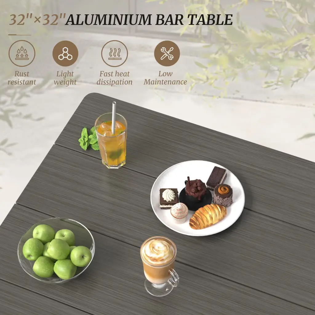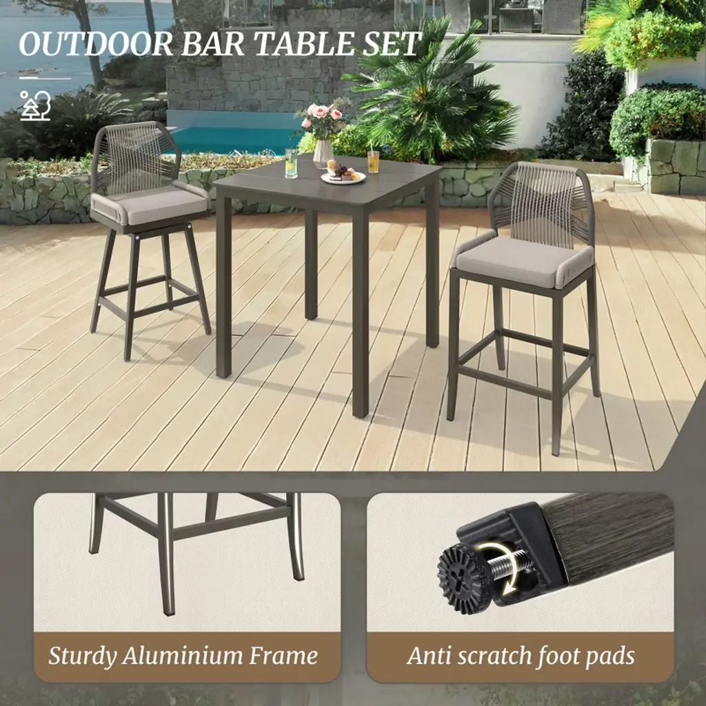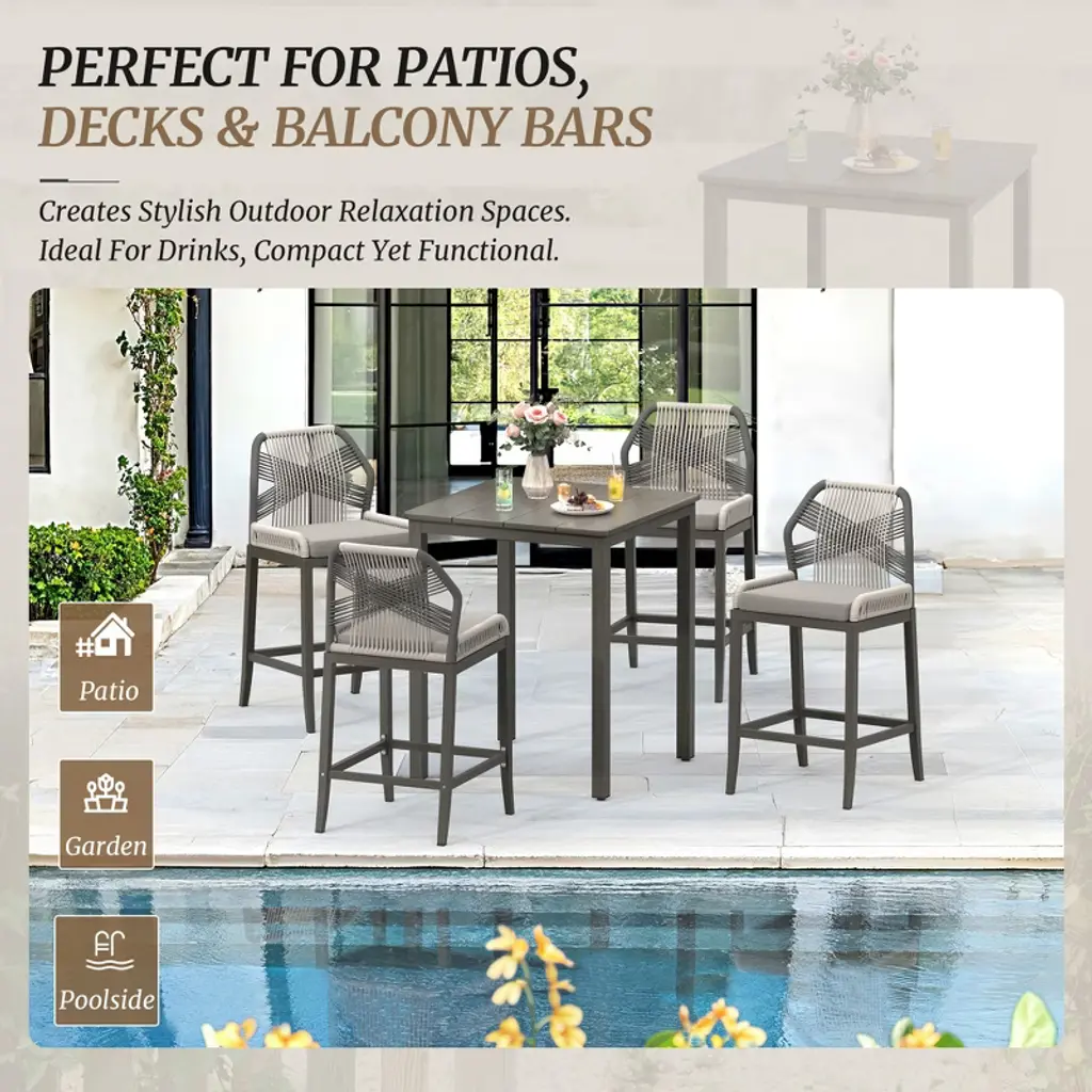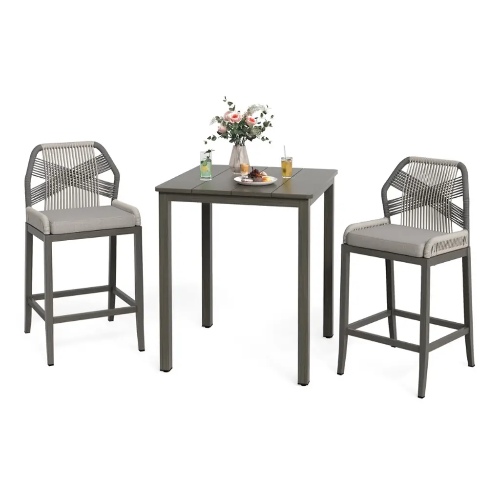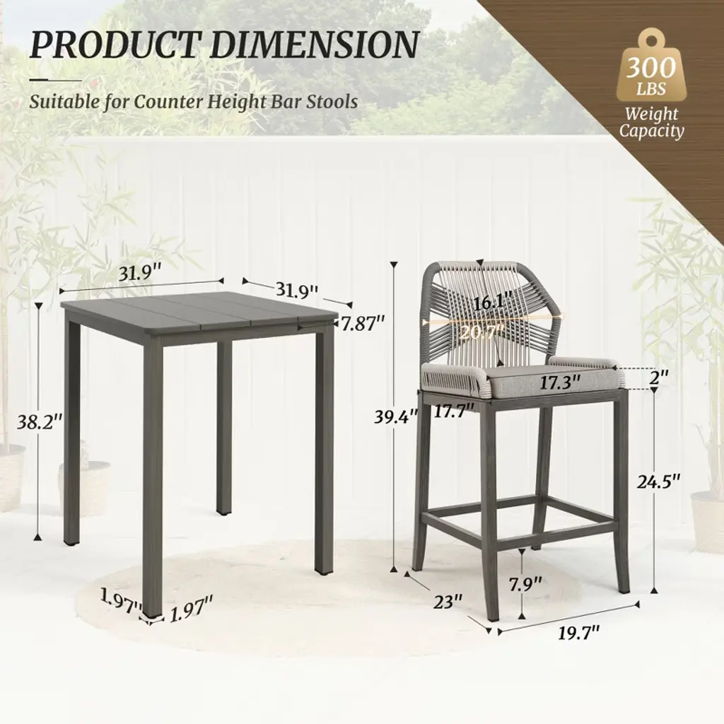 Arceso Outdoor Bar Stools, Rattan Outdoor Counter Height Bar Stools Set Of 3, 26.5" H Woven Rope Patio Bar Chairs With Aluminum Legs, Slate Gray