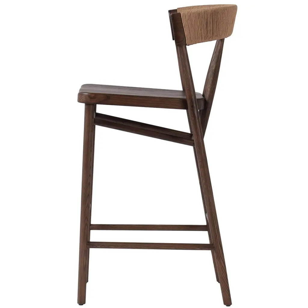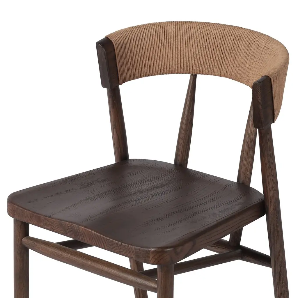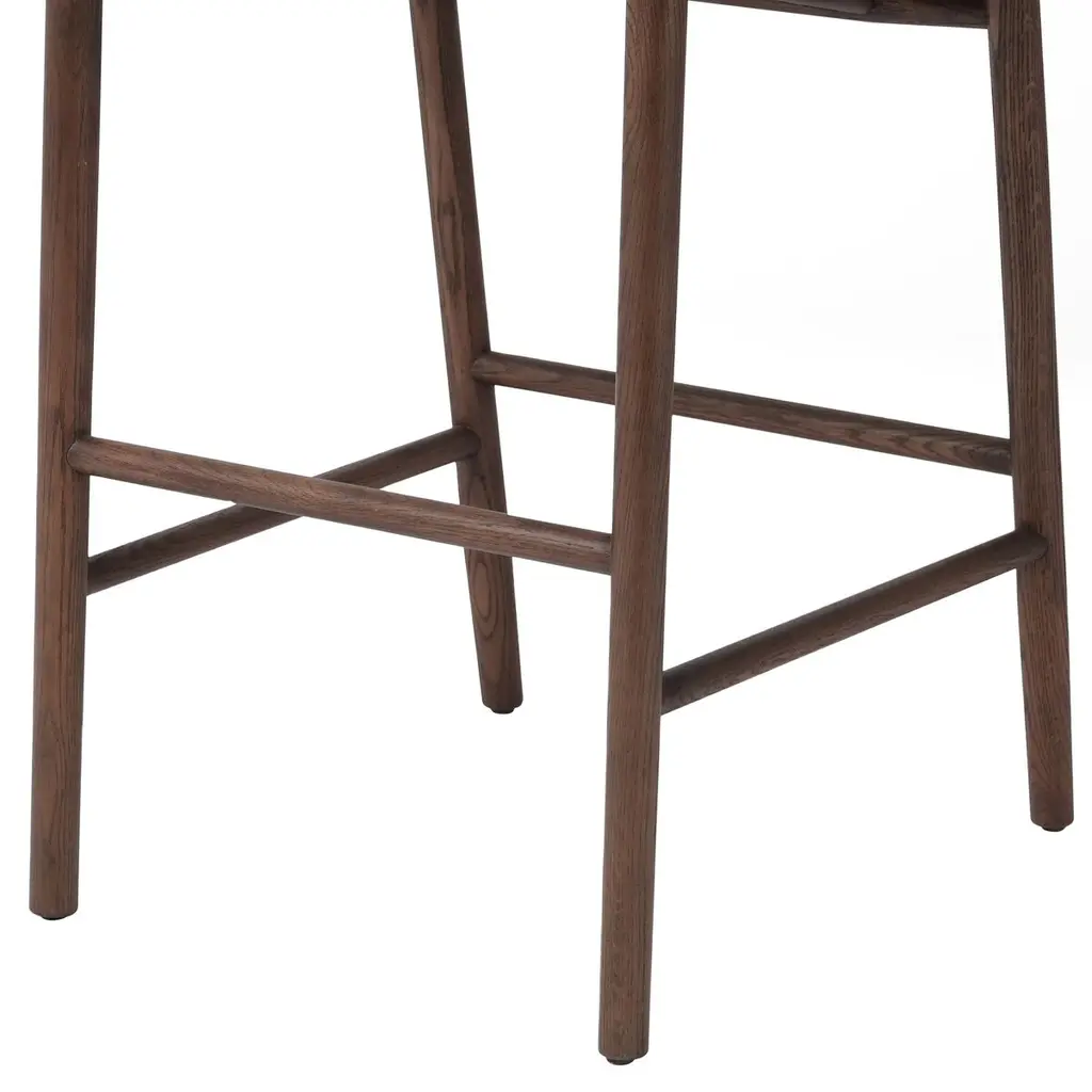 Paper rush wrapped around the top of the seat back brings a textural complement to this barstool's durable oak frame. A contemporary tribute to the classic Windsor chair, the stool has a gently curved seat for added comfort.