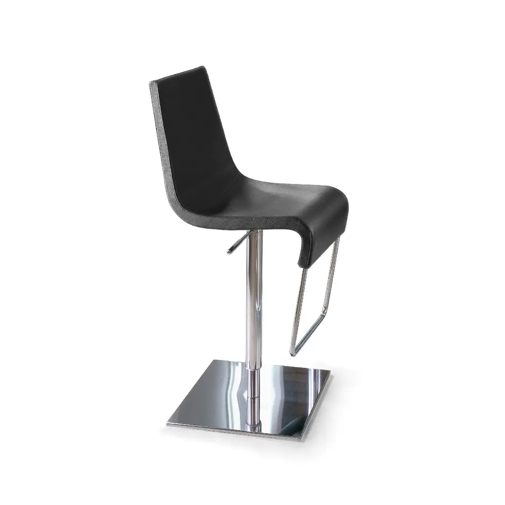 This ultra modern bar stool will be the envy of all your friends! The sleek polished stainless steel base and with U-shaped foot rest will go perfectly with your contemporary look. The molded seat upholstered in leatherette of grey or white is a compliment to any color scheme. The chrome gas lift with TUV approved piston provides a smooth adjustment. Invite some people over and give this stool a chance to impress.