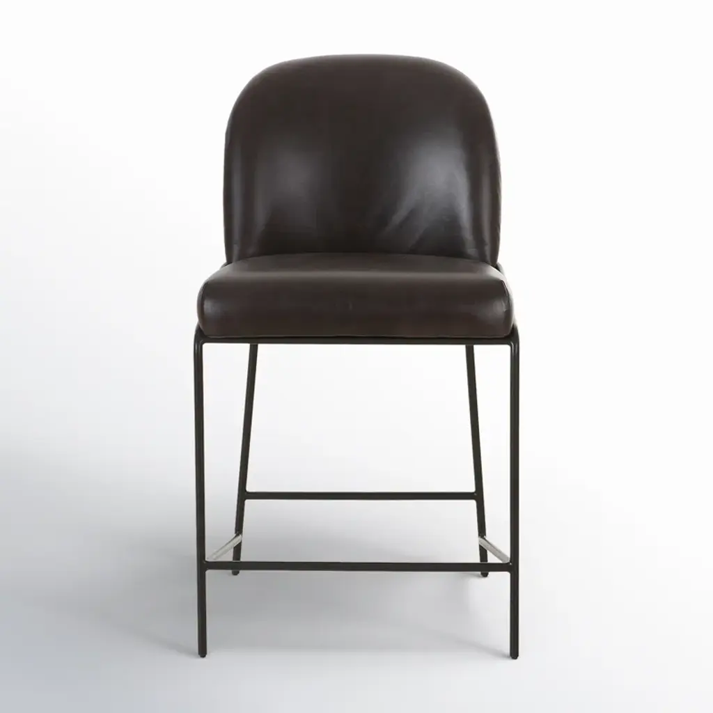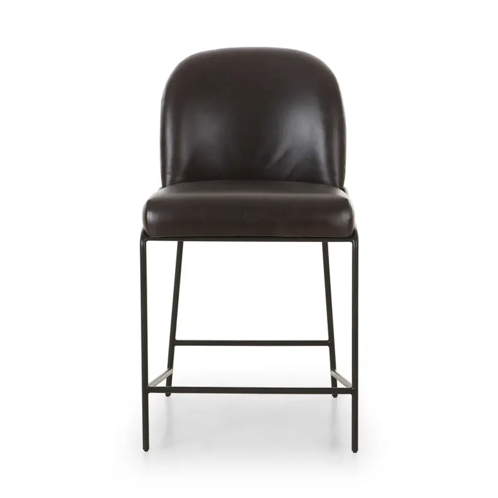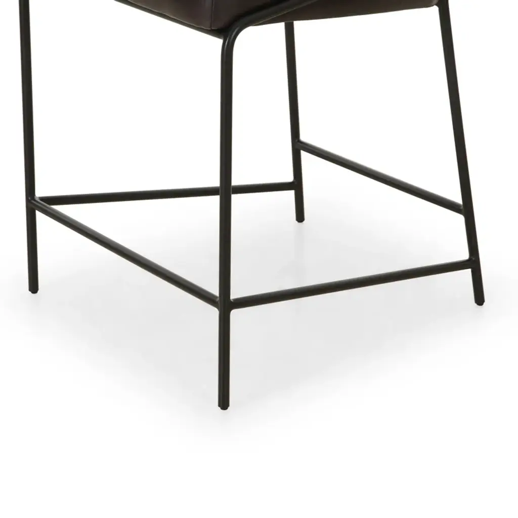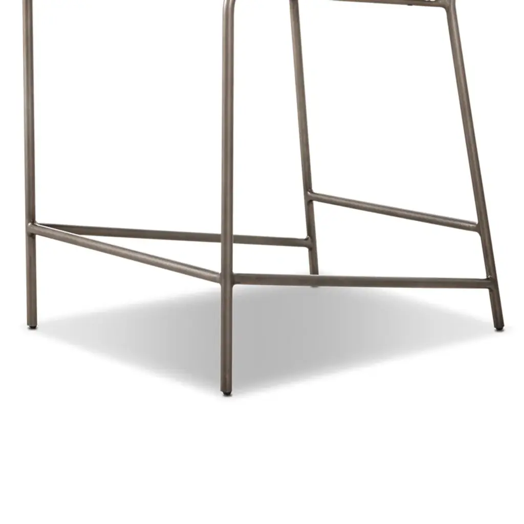 An art deco dream. Finely sculpted, scalloped-back stool seating of faux leather pairs with slim, iron tube framing finished in a brushed slate, for a smooth, fashion-forward feel.