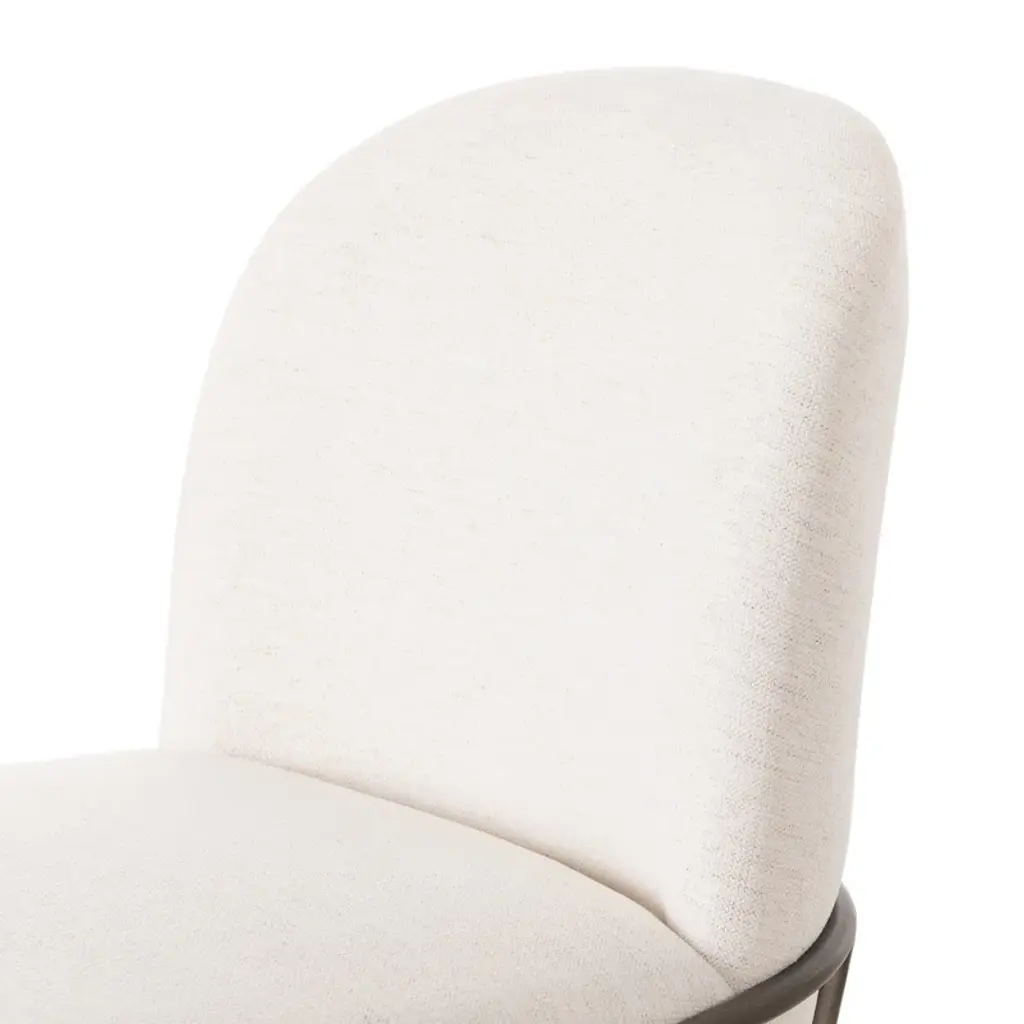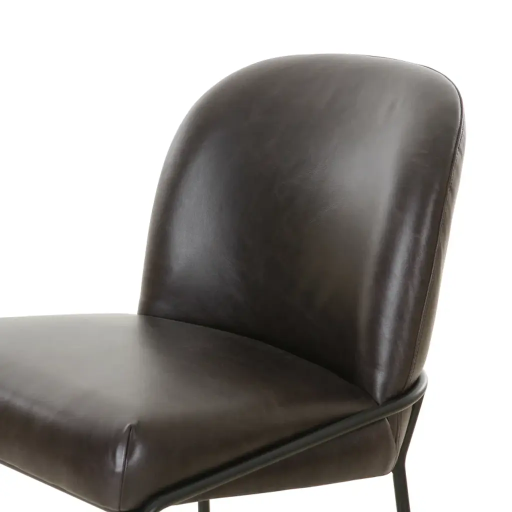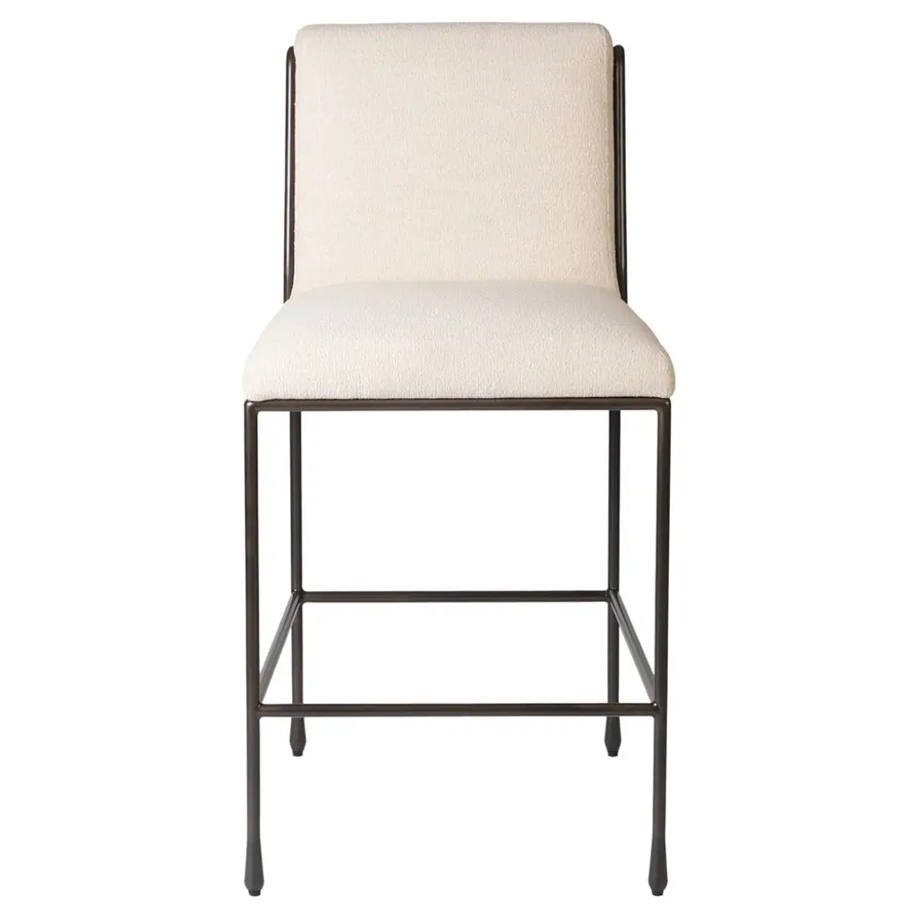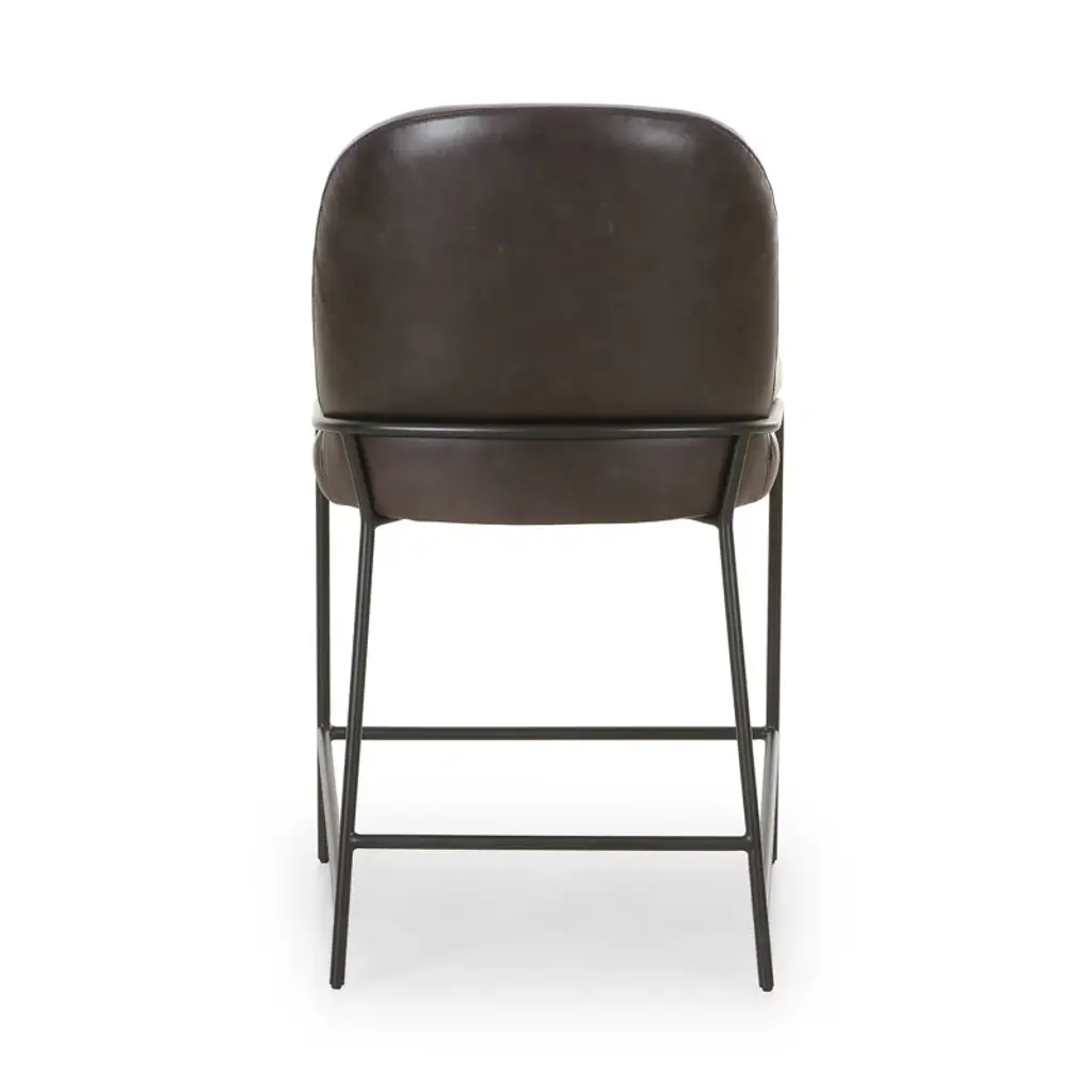 An art deco dream. Finely sculpted, scalloped-back stool seating of faux leather pairs with slim, iron tube framing finished in a brushed slate, for a smooth, fashion-forward feel.