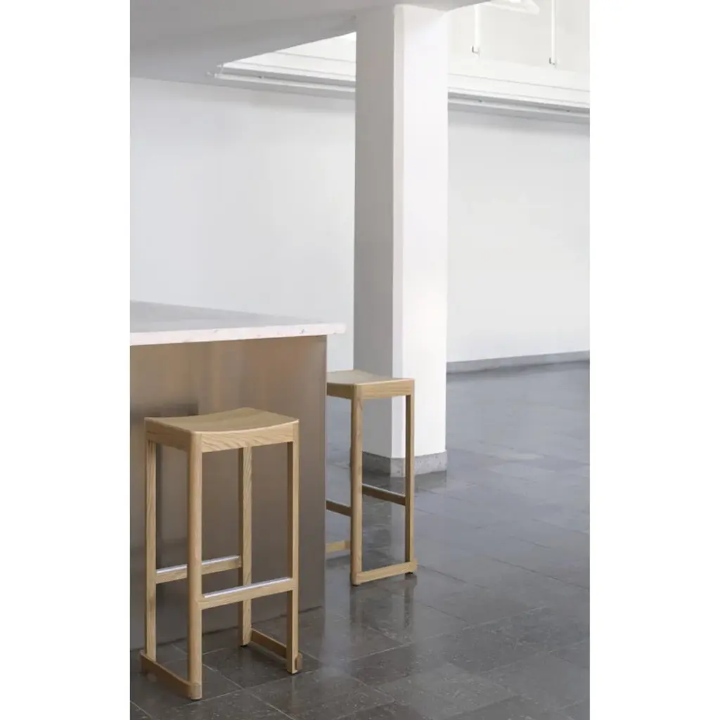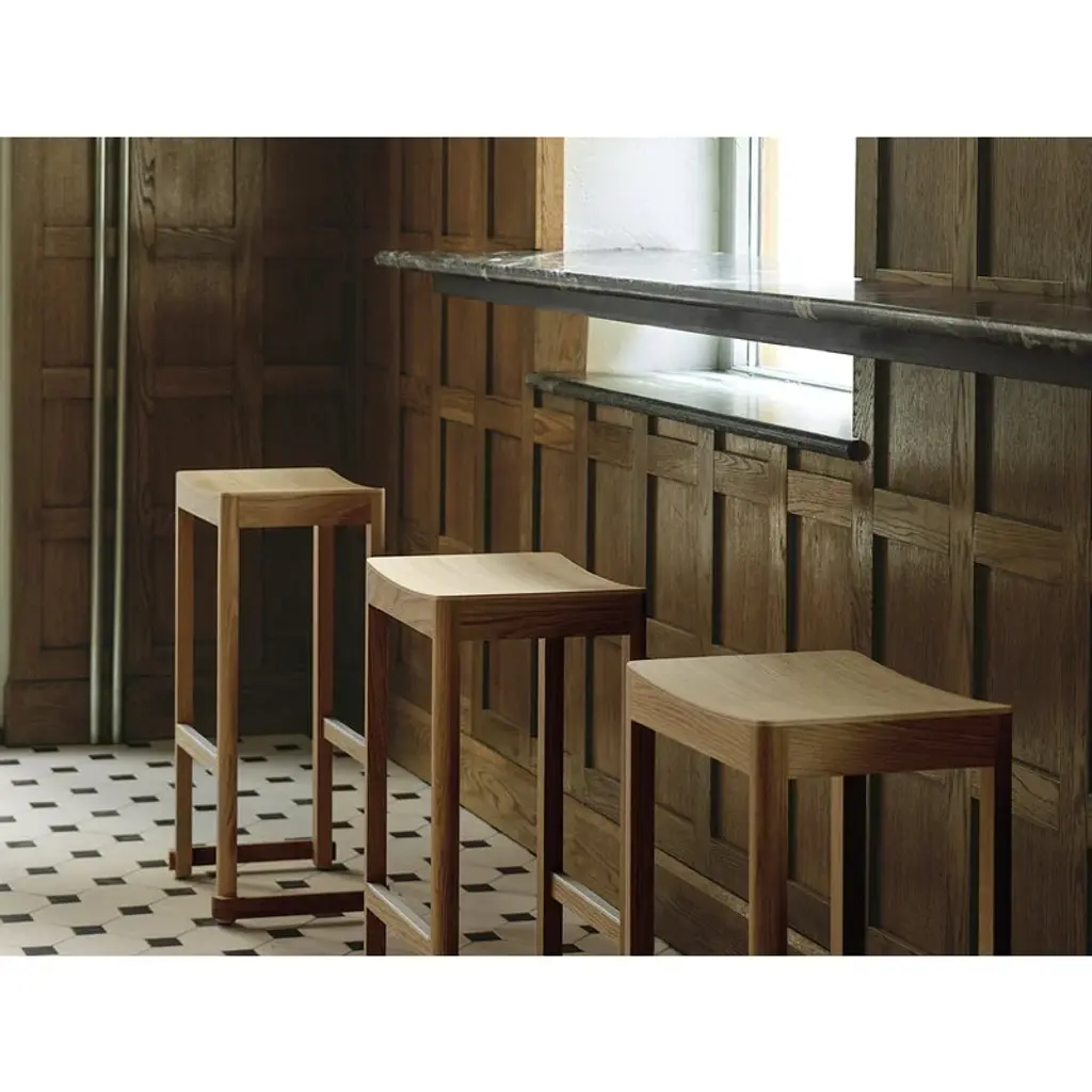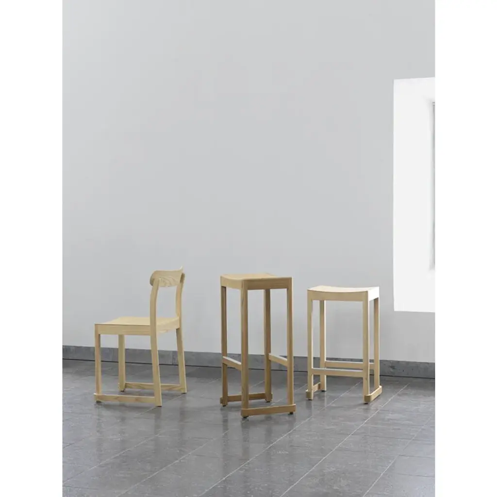 The Atelier bar stool by Artek has a balanced appearance and lightweight construction that make it well suited for restaurants, cafés as well as private use. The softly bent seat and connecting bars between the front legs give the bar stool an easy, laid-back spirit, and the footrests have been reinforced by aluminum inlays for extra stability. The Atelier collection was born in 2018 when the Swedish TAF Studio was commissioned to design the interior for a new restaurant at Stockholm’s Nationalmuseum – the chair got its name because the dining hall resembles an artist’s atelier. Finnish Artek was chosen as the manufacturer because of its high quality and long expertise with wood. The Atelier chairs are manufactured in Italy from locally sourced species of wood.
