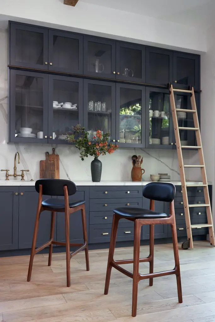 There’s lots to love about the Austin Bar Stool, from its clean mid-century inspired lines to its walnut frame topped with a buttery soft black leather seat. The Austin’s sturdy wood frame is topped with a supportive, yet sophisticated black leather seat, complete with a slightly open back, and a footrest bars included on the front and both sides. Did we mention it’s the perfect height for your bar, raised kitchen counters or pub table?