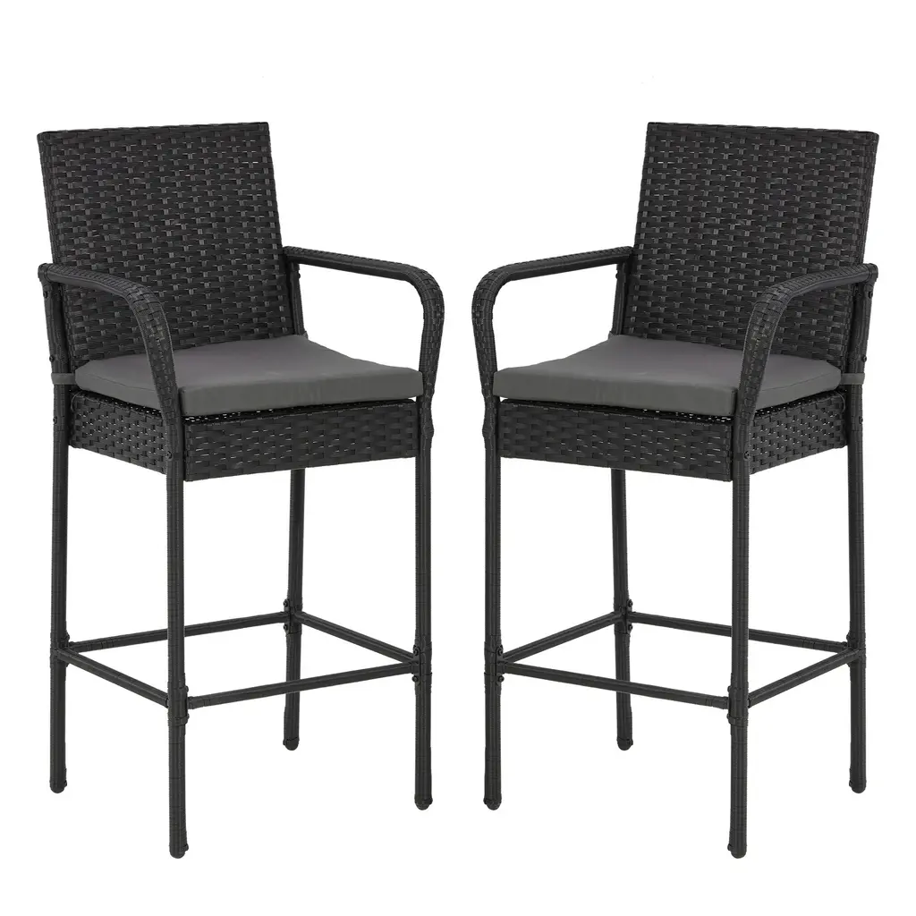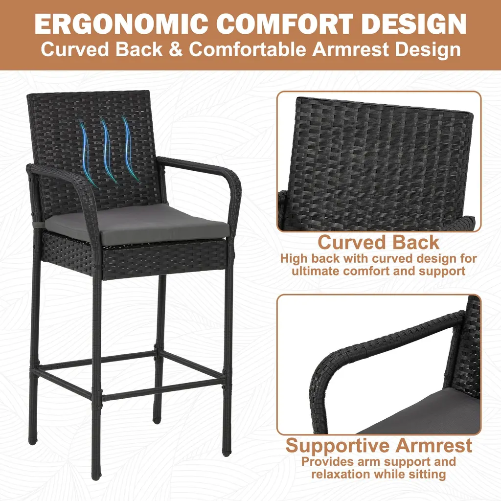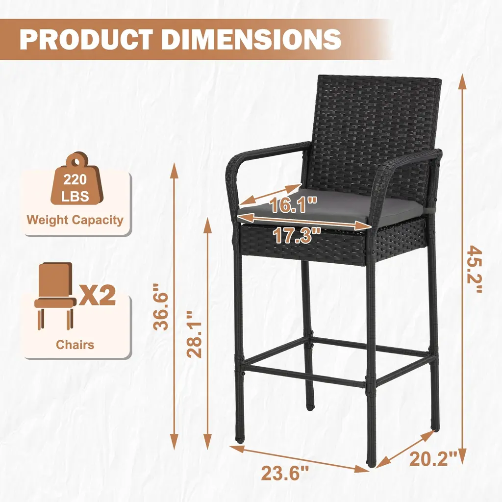 Avawing All-Weather Wicker Bar Stools - Cushioned, Ergonomic, For Patio & Poolside - Black/brown/grey - Black-2-Piece