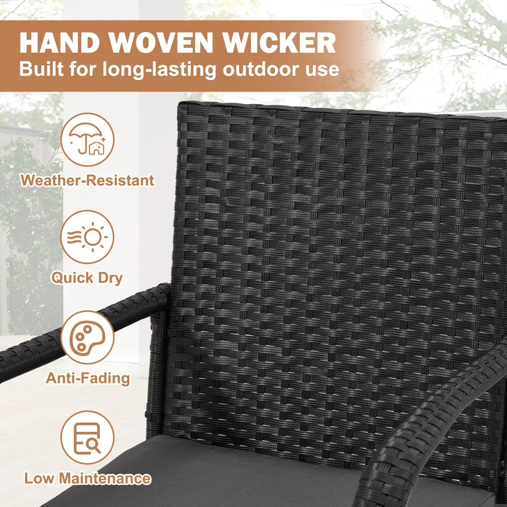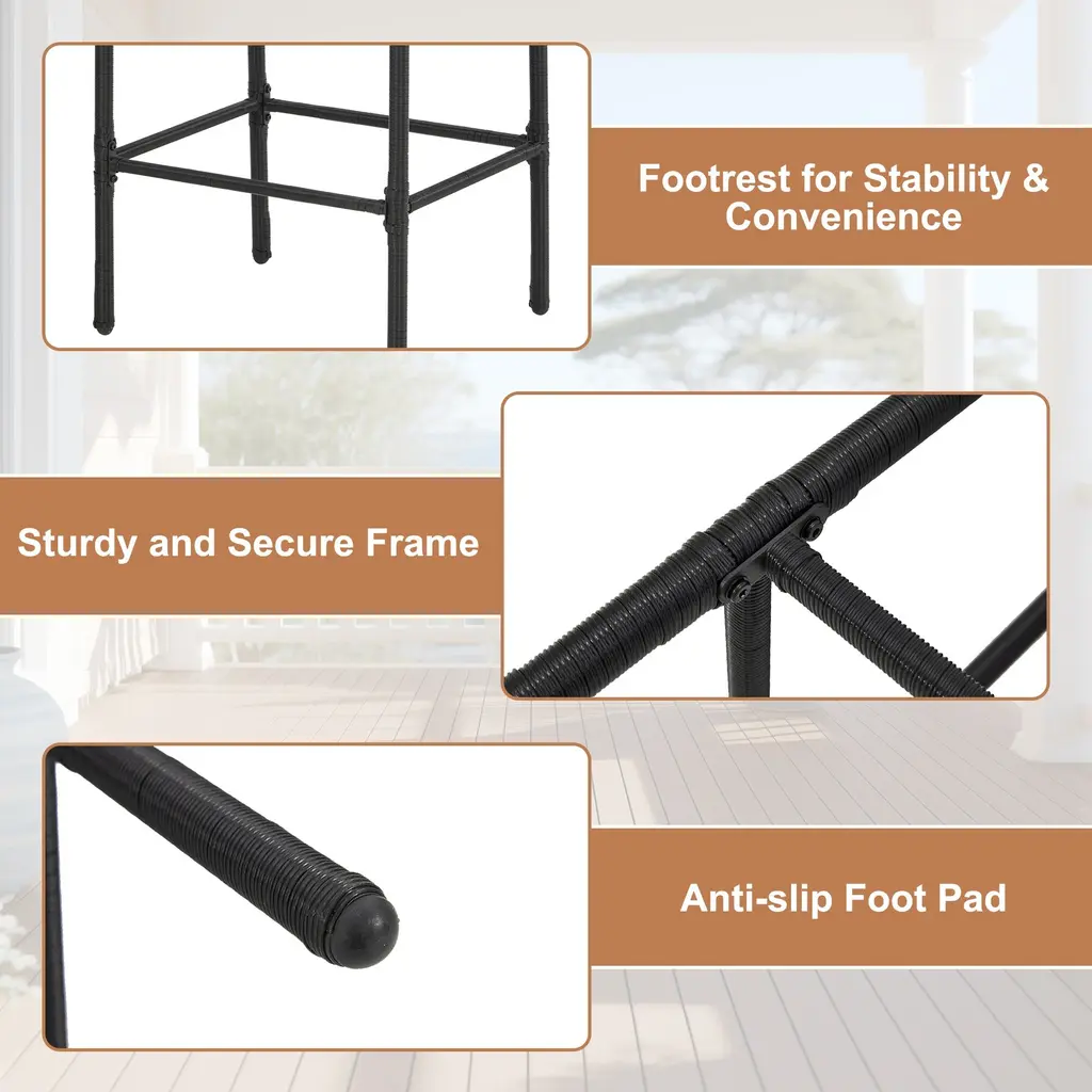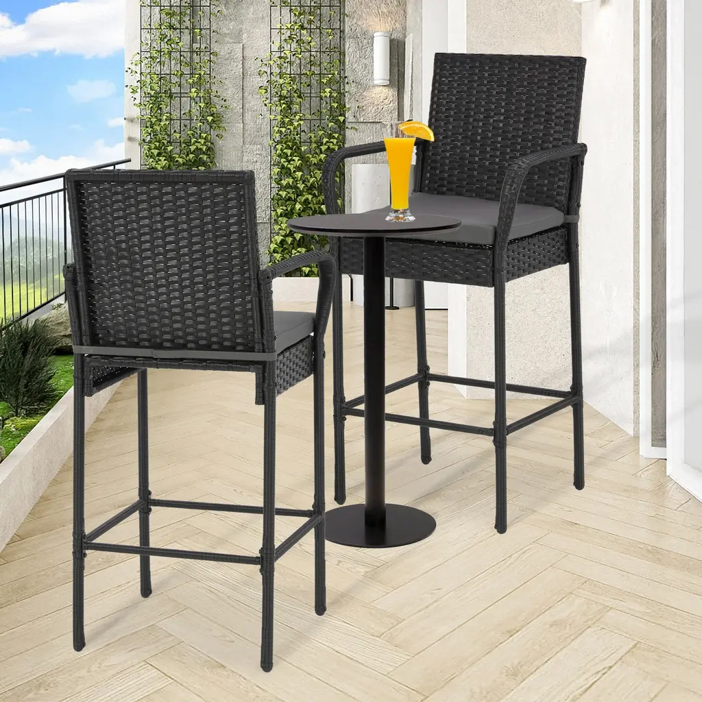 Avawing All-Weather Wicker Bar Stools - Cushioned, Ergonomic, For Patio & Poolside - Black/brown/grey - Black-2-Piece